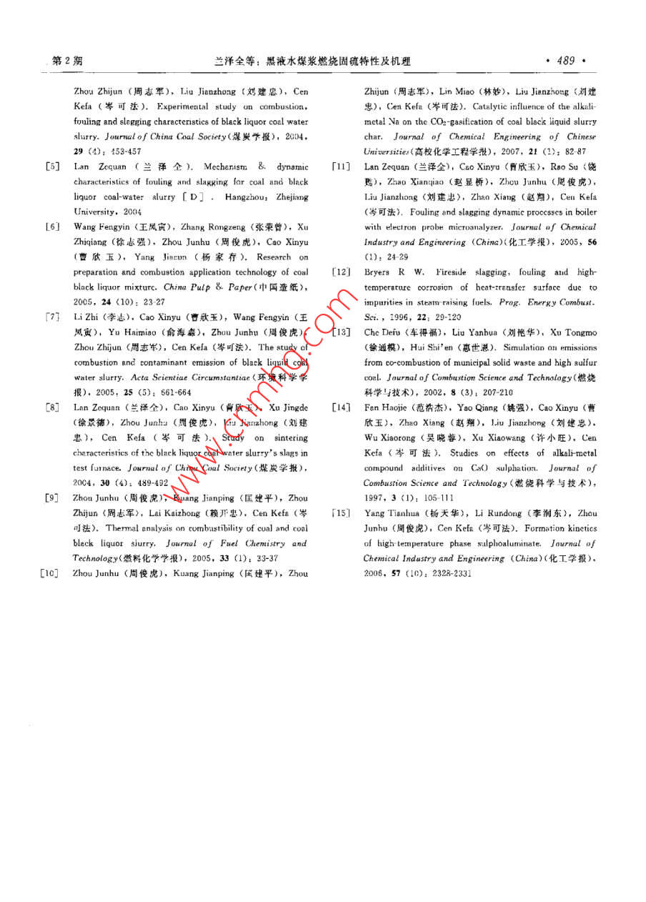 - 論文作者:蘭澤全,曹欣玉,周俊虎,程軍,劉建忠,岑可法