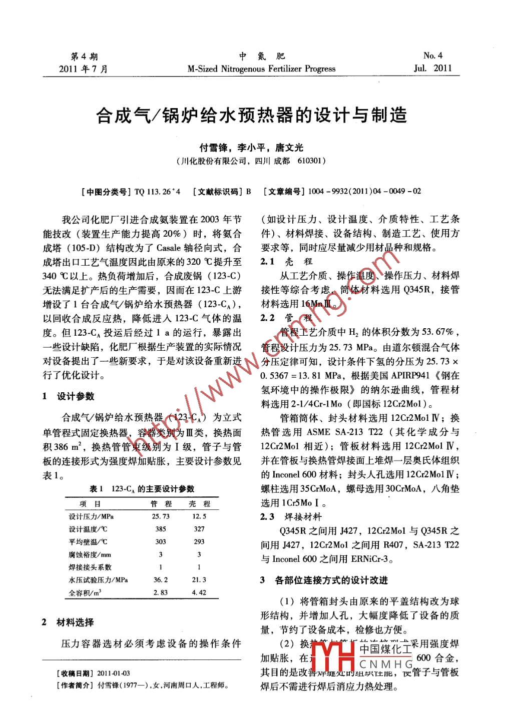 合成氣/鍋爐給水預熱器的設計與制造
