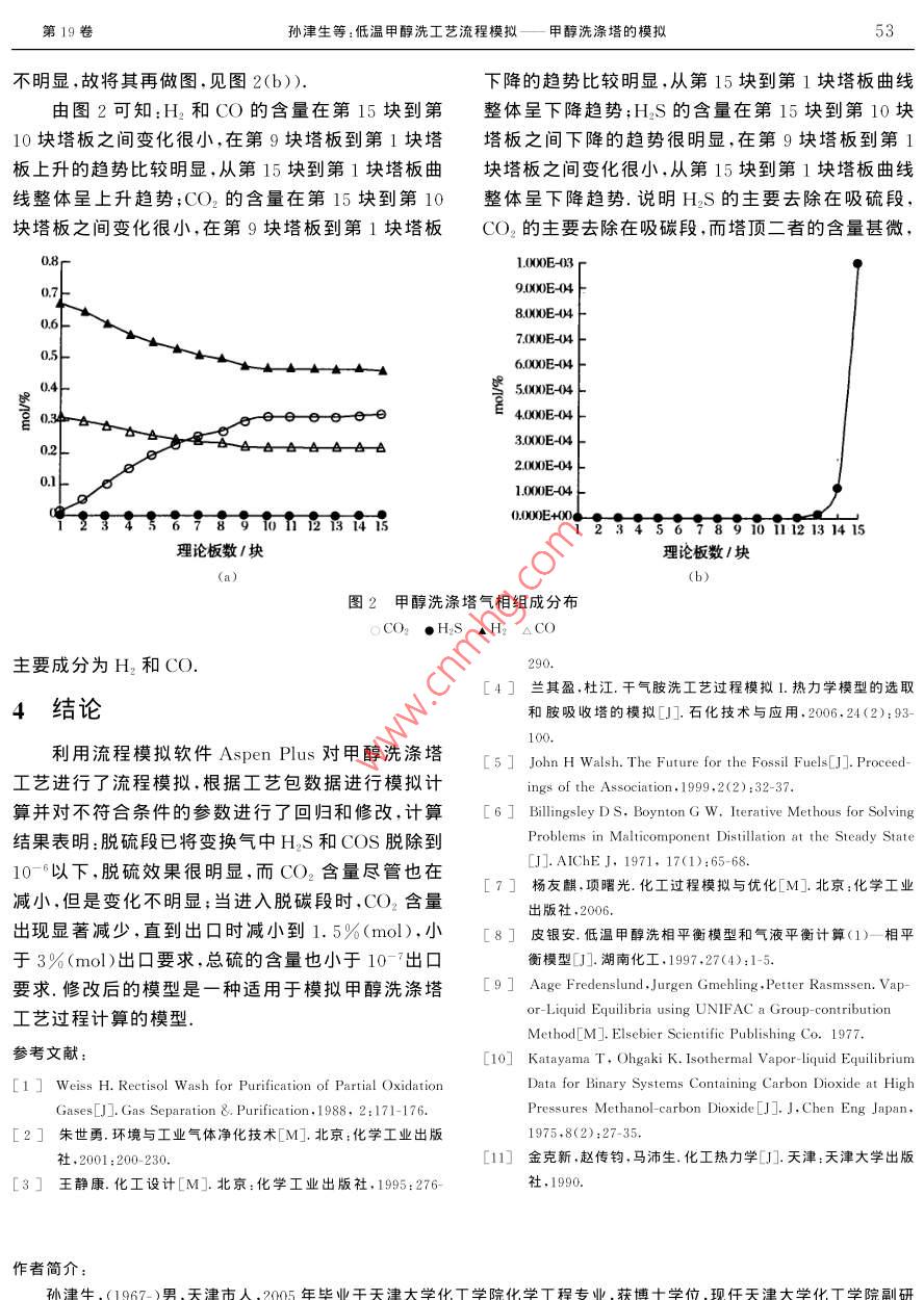 低溫甲醇洗工藝流程模擬——甲醇洗滌塔的模擬