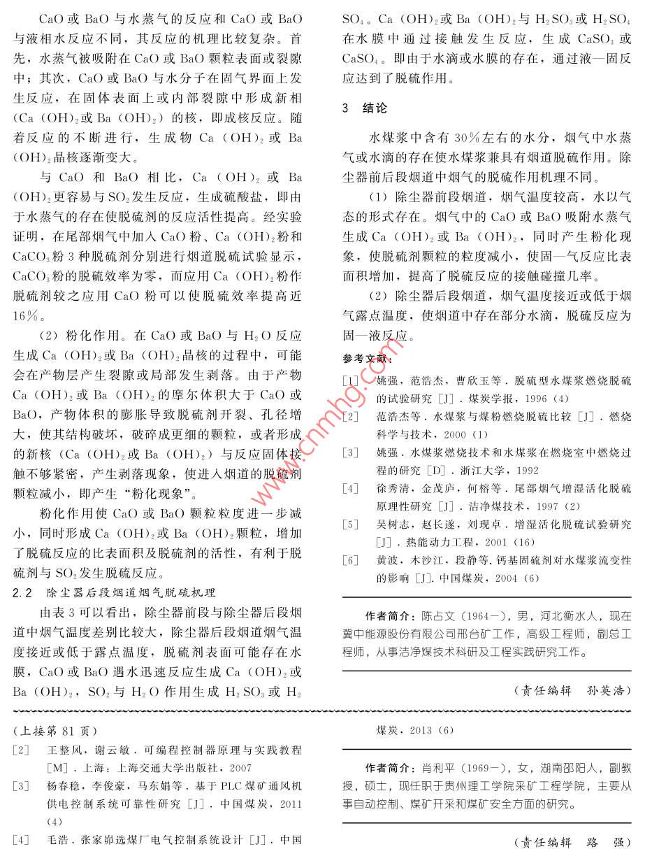 水煤漿煙氣脫硫作用機理分析