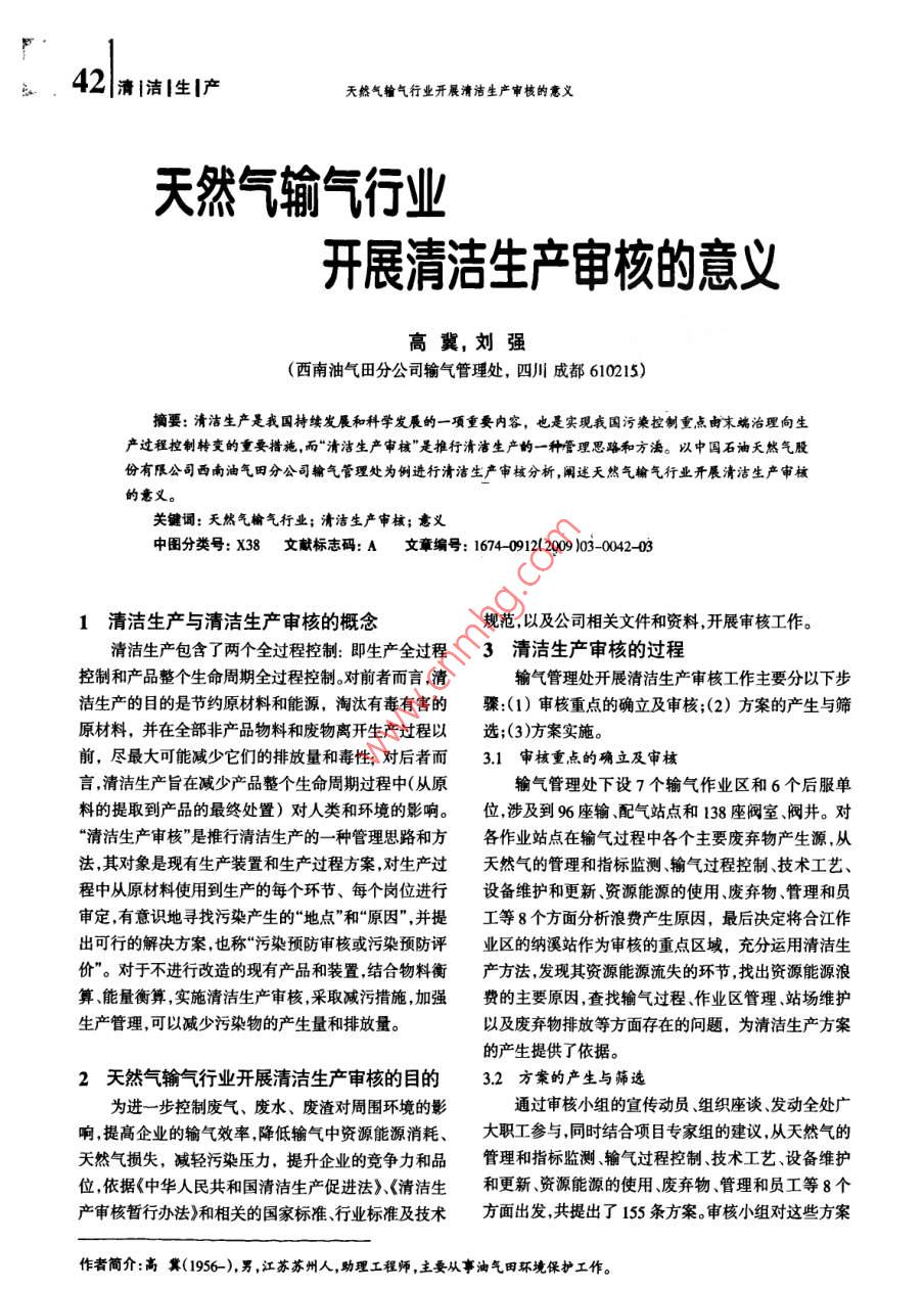 天然氣輸氣行業(yè)開展清潔生產(chǎn)審核的意義