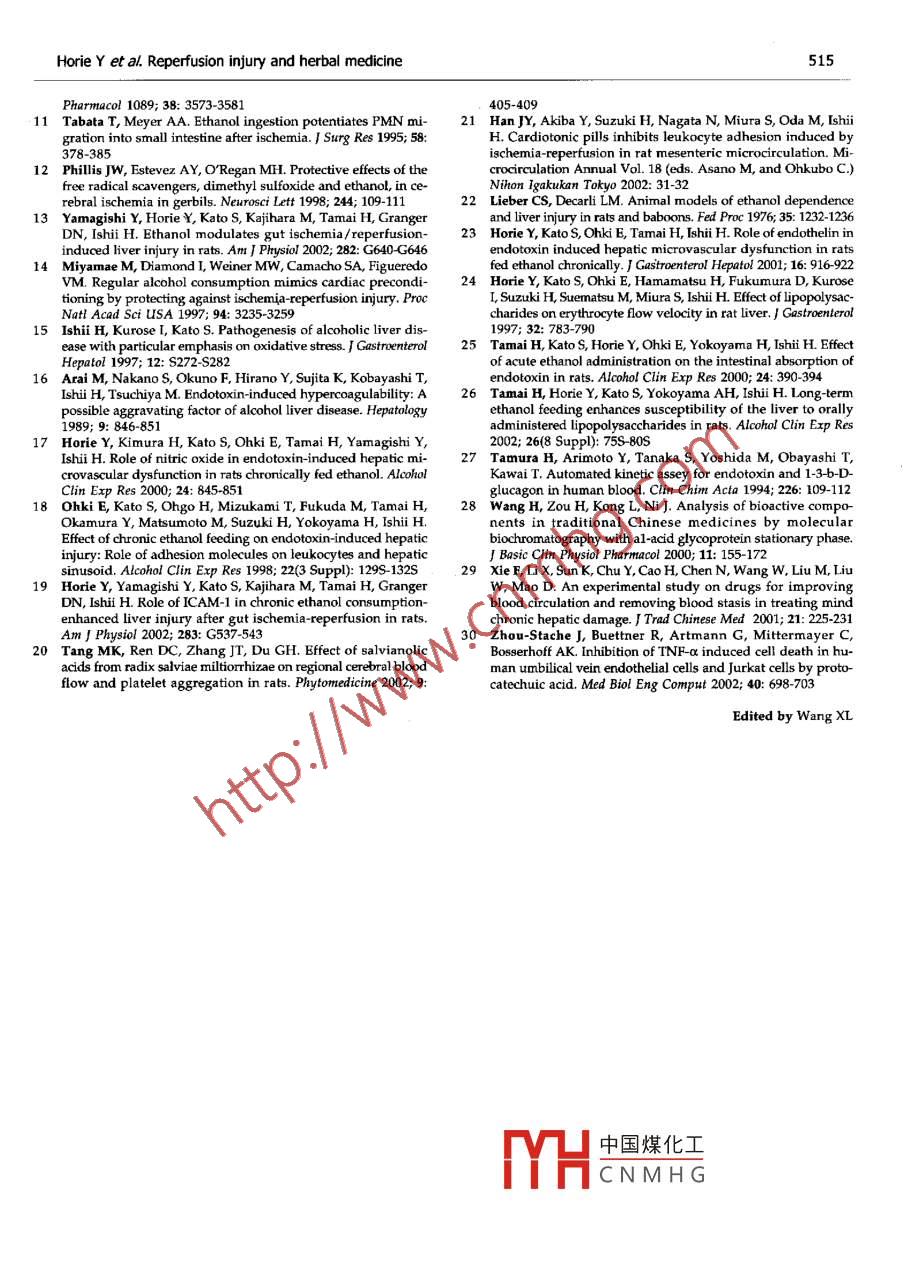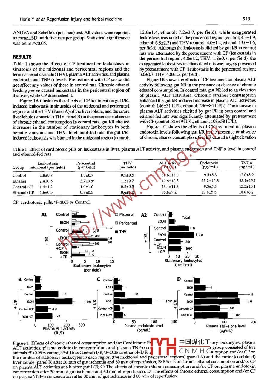 wjgewignet,comwww.w]gnet.como 2005 The wJG Press and Elsevier Inc. All nights reservedBASIC RESEARCH·Herbal cardiotonic pills prevent gut ischemia/reperfusion-inducedhepatic microvascular dysfunction in rats fed ethanol chronicallyYoshinori Horie, Jing-Yan Han, Shuka Mori, Masahiro Konishi, Mikio Kajihara, Takehiko Kaneko, Yoshiyuki Yamagishi,Shinzo Kato Hiromasa Ishii, Toshifumi HibiYoshinori Horie, Jing-Yan Han, Shuka Mori, Masahiro Konishi, an enhancement of gut I/R-induced responses by chronicMikio Kajihara, Takehiko Kaneko, Yoshiyuki Yamagishi, ethanol consumption via the reduction of blood endotoxin levelsShinzo kato, Hiromasa Ishii, Toshifumi Hibi. Department ofInternal Medicine, School of Medicine, Keio University, Tokyo JapanC 2005 The WJG Press and Elsevier Inc. All rights reserved.Supported by Grants From Tasley, Tianjin, ChinaCo-corresponaey yoshinori Horie, M.D., or Department of Intemal Key words: Intestinal reperfusion injury; Hepatic microvascularg-Yan HanMedicine, School of Medicine Keio University, 35 Shinanomachi Shinjukudysfunction; Cardiotonic Pill; Ethaku, Tokyo 160-8582, Japan. yhorie@ sc itc keio acTelephone:+81-3-3353-121-62298Fax:+81-3-33536247Horie Y, Han JY, Mori S, Konishi M, Kajihara M, KanekoReceived: 2004-02-02 Accepted: 2004-03-16YamagishiY, Kato S, Ishii H, Toshifumi Hibi. Herbal cardiotonicpills prevent gut ischemia/reperfusion-induced hepatiemicrovascular dysfunction in rats fed ethanol chronically. Warld7 Gastroenterol2005;11(4):511-515Abstracthttp://www.wjgnet.com/1007-9327/11/511.aspAIM: Cardiotonic Pill (CP), an oral herbal medidne that indudesDanshen(Salviae Miltiorrhizae), Panax notoginseny andDyroblanops aromatica gaertn, has been clinically used for INTRODUCTIONdiseases, atherosclerosis, and cerebral infarction. The main A large body of evidence implicates leukocytes as mediators ofcomponent, Salviae Mitiomhizae, has been reported to prevent microvascular dysfunction and tissue injury associated withcerebral and intestinal reperfusion injury. However, little reperfusion of ischemic organs. Several experimental strategiesis known about the effect of CP on hepatic microcirculation. have been used to demonstrate the contribution of leukocytesThus, this study aimed to determine whether CP could affect to ischemia/reperfusion(IR)injury, including polyclonalhepatic microvascular dysfunction elicited by gut ischemia/ antibodies that render animal leukopenia[l-3, adhesion moleculereperfusion(I/R)in rats fed ethanol chronically.specific monoclonal antibodies[ 4-6, and adhesion moleculedeficiency in mice. The effectiveness of adhesion moleculeMETHODS: Male Wistar rats were pair-fed with a liquid diet specific monoclonal antibodies(MAbs)and adhesion moleculecontaining ethanol or isocaloric control diet for 6 wk. After deficiency in attenuating IR-induced tissue injury have led tolaparotomy, one lobe of the liver was examined through the widely held view that leukocyte-endothelial cell adhesionan inverted intravital microscope. The rats were exposed is a rate-determining step in the pathogenesis of this injuryto 30 min of gut ischemia followed by 60 min of reperfusion. process. We developed a leukocyte-dependent model ofRhodamine-6G-labeled leukocytes in the sinusoids were hepatocellular dysfunction elicited by gut Ir >. This murineobserved 90 min after the onset of superior mesenteric artery model allows in vivo assessment of the effects of I/r oncausion. Plasma tumor necrosis factor(TNF)r-a and endotoxin leukocyte sequestration in sinusoids of different regions oflevels were measured 1 h after the onset of reperfusion. the liver lobule, leukocyte adherence in postsinusoidal venules,Plasma alanine aminotransferase(alt)activities were and the number of perfused sinusoidmeasured 6 h after the onset of reperfusion. In another setEthanol has also been reported to modulate IR-inducedof experiments, CP(0.8 g/kg, intragastrically )was administered tissue injurylto-12. In a perfused liver model, ethanol enhanced1 and 24 h before the onset of ischemiaIR-induced hepatotoxicity(an increase in blood levels of liverenzymes)by an enhanced production of reactive oxygenRESULTS: In control rats gut I/R elicited increases in the species to. In an in vivo gut I/R model, ethanol also enhancednumber of stationary leukocytes, and plasma TNF-a andIR-induced neutrophil accumulation in the intestinal wall]n.endotoxin levels and plasma ALT activities. These changes In an in vivo cerebral I/R model, however, ethanol pretreatmentwere mitigated by pretreatment with CP In ethanol-fed ratwas reported to reduce cerebral I/R injury al. We have recentlythe gut I/R-induced increases in the number of stationary reported that low-dose ethanol attenuates gut IR-inducedleukocytes, plasma endotoxin levels and ALT activities were hepatic microvascular dysfunction in the midzonal region andenhanced Pretreatment with CP attenuated the enhancementequential hepatocellular injury, whereas high-dose ethanolof gut I/R-induced responses by chronic ethanol consumption. enhances hepatic microcirculatory disturbances in the pericentralential hepatocellular injury s).CONCLUSION: These results suggest that CP prevents中國(guó)煤化工 mption has been notedthe gut IR-induced hepatic microvascular dysfunction and to sioronary artery diseasehepatocellular injury. A reduction of infammatory responses HoweCNMH Gon often results in fattysuch as TNF-a production via reduction of blood endotoxin liver and liver failure, which is of particular concem when suchlevels appears to be involved in the mechanisms. Chronic fat-laden tissues are used as donor organs in liver transplantation.ethanol consumption enhances gut I/R-induced hepatic This important clinical problem has drawn attention to themicrovascular and hepatocellular injury. CP also attenuates relationship between ethanol consumption and reperfusion512ISSN 1007-9327 CN 14-1219/R World J Gastroenterol January 28, 2005 Volume 11 Number 4injury in the liver. 