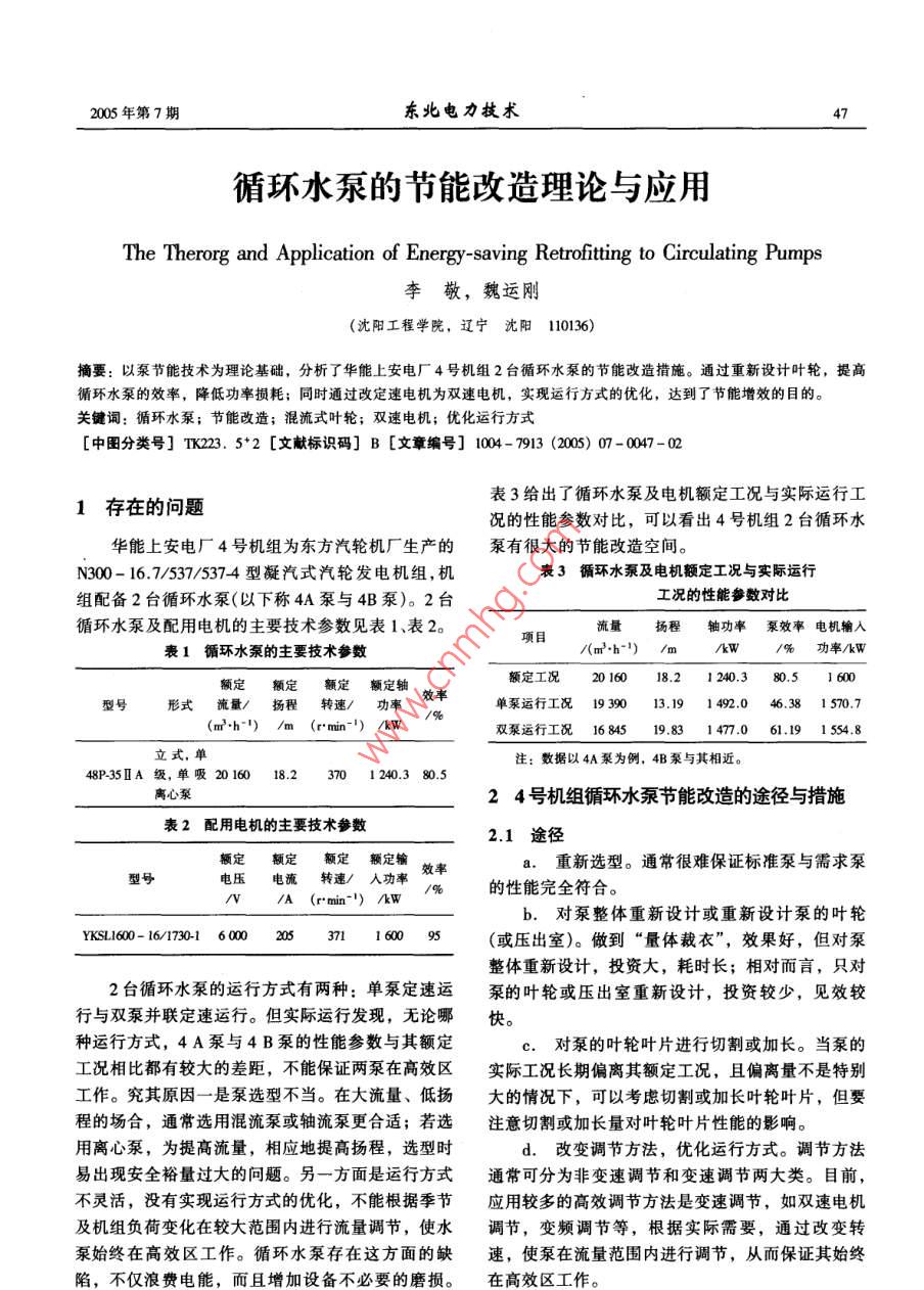 循環(huán)水泵的節(jié)能改造理論與應(yīng)用