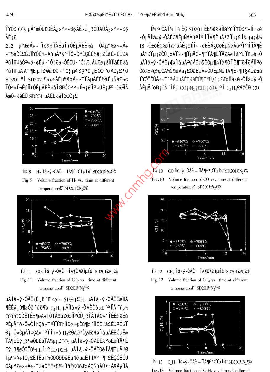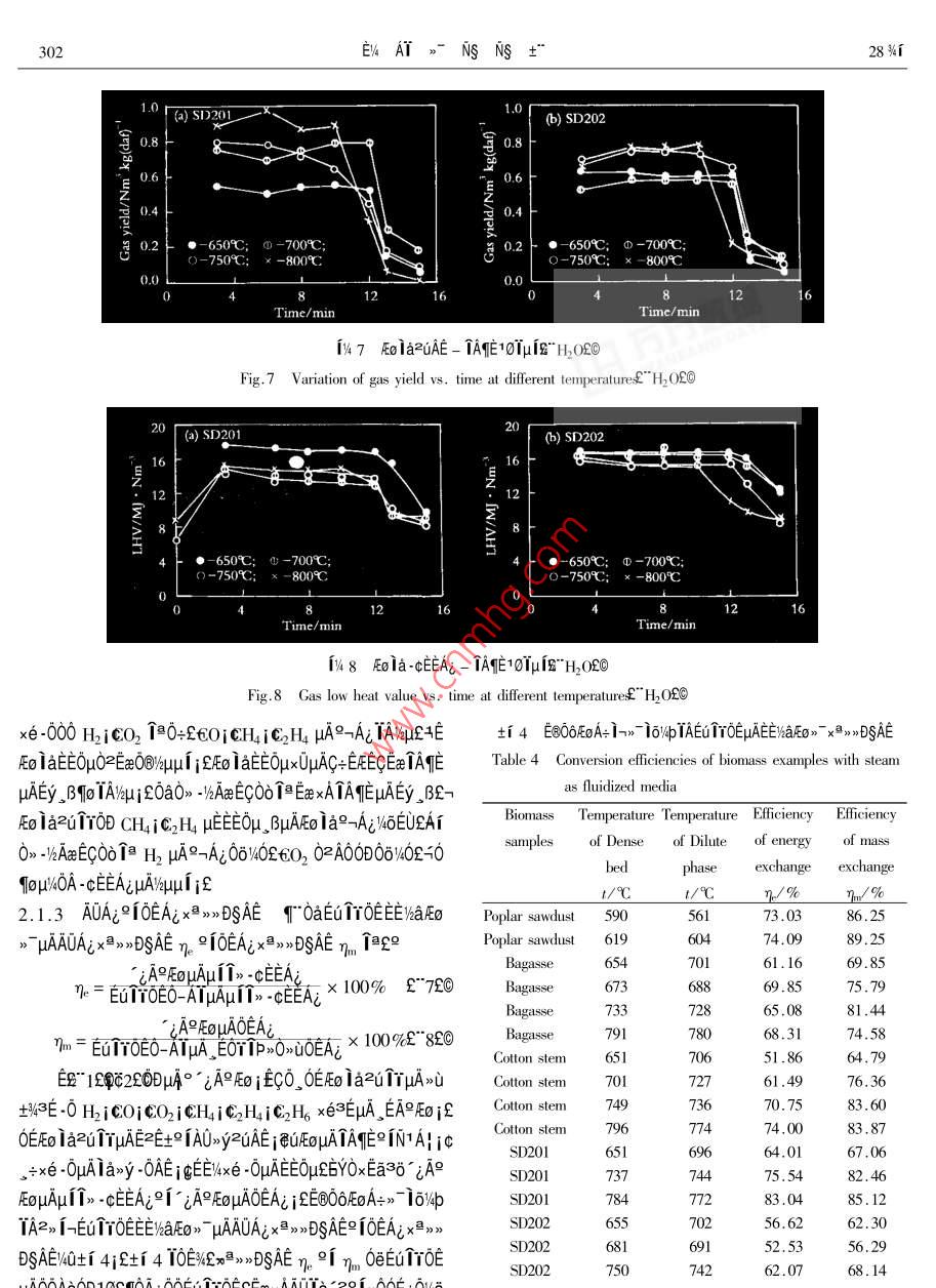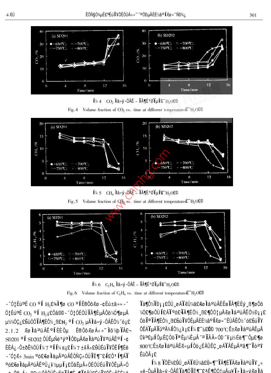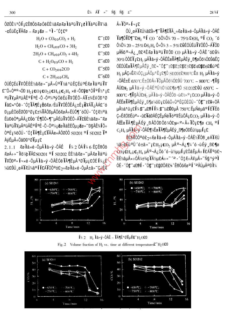 μ028%r μ04EUEV4AT>-NsNs+°Vol.28 No.42000Ae 8 oJOURNAL OF FUEL CHEMISTRY AND TECHNOLOGYAug.2000E T0E0UA+>- *20DμAE%a91Eo》ND%i'EONSO%4" 2-i60C1c^ E3i "0A+-1EE112 AAx0°2qAi9 i一f"Cans 6NSEEAO131Tμ2 t土410084200a 0∞εOU∈B@OδF∞4°μ≌EoA+ 1->* 10%WpTA2902》 1ETOE0-A1:ODEEiaF>" EuNezNDWzFo la2u1rzuAEjE -0Ea-0|TAEμAta》1aAE if0U0》63EN11AAYA->- 2EuNe 1*ETEqTaOOEGTTOEO-ATEEVaE0>- x0T1yajμAEo la2TrzuAE%°3E -0WaDDAERT i27A0D00μa -016AE0-AT SD20A" Eucalyptus Globulus aAo20e SD202”P(pán)imus Radiata %aAOEOUEOOδEO/°μ≌EoAτ>-9[2, i-TAE 16%/pTAμAEE'AaFEg》1oD0£i-E+>1 -016AEAv600A→》TeElo/WpTAETTOEE%aE0》EμN(yùn)e1a1qμAit0if10/40 "EEETYOE£>A+>~ ' 2EEE0>-0D1%4 -0Aa9A29rQ351.2TATxteEqAeCA1A0AaRAE90253 - 240"2000204 - 0298 - 08ETToEEE/%a2 iEO》> -EC)}x<3J/%DOI-uAEUTOEAUOA的hal[0> EμN(yùn)eμAO-ATε6uAζμAπσ0μ -01δ910≥E0 -01oEE>“TNs -/-"Ey%qig βI4qDTi-uAEo ia>o0e iaE%ATμA0O /4Q+1 1AE%T -02//0+1 2jEE 0)1=EA9N->-A+>- "210.09342θE0U坦-ciEOUEuA00~ 9「》.+LμADe0≈θUQV∈ti 1 EuTrOENUE-μA1∞0μ -0169 10@E0-0T8ETEOμ/z, BEAμA0E06019ε0∪_ O0ETOEE/haAFO>" V4AE6Table 1 Proximate and utimate amalyses of biomass samples1-2E0> jθET“2E0》jQ+》~ °2E0>-91D~ °σ°2EoPoplarBagasse Cotton SD201SD202》72DEA+>7 -2EE/haFEO》ODEaTAIOμAOAμQSYEEuTrOEsawdust_stem0u1eD0A+>- -2AUE/haEmO0UE@OOEoA+>- *2AUE%alEoW/%10.047.117.9412.384.94 .FC.1/%13.3912.43 16. 5211.7613.44.》EAUZUEGODEEOμE/4Eo jENDWEU1YOE0UA-》- AUμAEEV2p/%80. 1584.4077.0074.9681.22VWa91OUE66Eo21O0eAμEE)haE0》- i0D02O2 -C0>00 βAw/%4.190.94 :4.570.90.40Wa:/%2.272.554.94DSQa/kaμAEuTTOEAOV/4E6S%BOD000uAO, u/a0aiCa/%46.8748.2845.6542.630D10Eu TT0EμAEE/kaEo>-ONODD19aEμN(yùn)e91AiAONDH/%5.525.665. 606.55.9434203~ sp<0UA+- =0DAEE)aFEo》EμN(yùn)eND%iE21%%T0a/% .40.9142.30 41.0237.0140.26N:/%0.180.220.530.33fu6zEεi0HδECTOTeD0Eo -00DuAA+>~ '2Eu TTOEEWaSa/%0.060.05 0.160.050.04E@O6EoFo -00DuμAA+》- 2ETTOEE/aFEo》 μANDW4jYY0米/M.Ng-1 15.533 16.245 15.156 14.821 17.333EU;2+%AμAAUEYECA -0P%-1A12 1-ia- EECEQEOUμAO》2 EUTTOENuE -μAAES4M -02/.δ104E≌Txτ°λAεNDWjka10μAO>2i -02θ02/eEUAn00Table 2 Size distribution of biomass samplesETrOEO-AT -0+80UE@O6EoA+>-9fμPEoA+>~ μAA+> 2一Size rangePoplar Bagase Cotton SD201 SD202DEWaE> μAEo iazu1rzuAEjolaxe-0-0AEiqpM,/mmsawdust/%_ 1% sten/%_ /% ./%OμEaTAηEμAta>~ 1oD0£n1 %eEUAE Ta0OEuTrOE0-AIEE0.051.07.1 0.213 0.1212.0~ 1.013.727.433.3 0.654 0.227W6aFo) uAAUA;010EAx>>DSAE0eTAηEμA10Tμif1.0~0.7125.69.315.4 10.947 30.6200.71~ 0.631.94.4 9.077 13.9461μN(yùn)e0.63-0.44215.62.34.6 24.236 26.9521.1 FE0>-0-AT°['2AT 0E土AEEyOO1UAOμAEuTτ0∈0.442 ~0.3550.84.8 8.150 6.2150.355 ~0.28017.311.7 13.350 8.762NUF. - NTA%aA" Poplar sawdust2QcE0a0uA~ Bagasse£O0.280~0. 10514.714.6 21.195 10.2329[Ap > %&OA@r" Cotton stem國(guó)Ai Az00Eu 1τOE NuE- -0. 105 ~ 0.0980.70.52.7 3.543 1.000 .0.098 ~ 0.0612.0SD0T~0>00enA%%aAOZC i SD202~0> 00E A4%aAOCOE< 0.0611.60.6 3.816 0.758EA/ypuANDi>011 Van Swinden Laboratorium NederlandsAverage size/mm_ 0. 3691.056 0.433 0.249 0.417Meetinstitut B. v. Ia1OjETE6Ta0OEuTTOENuAE -0Ax+nole£9iagasse sanmple appeared as fine needle shape印。aE0LU91999- 12-11A-0P-/4A12-i8~ EEC2@Tx+TAi2ITA;°AC9IS3 * - CT92 - 0090340EONSO%μ∈εEu1τ0E0UA→>~ *20DUAEI%a2iFo》NDWi299ATμAN- ->0x+A+>- -EE)aFo>-. 0|E+μA 2ATEAi個(gè)NU4EBuμ1AEAaAI1OμAqEε60la ,AE/oEe -cTauAA+EμN(yùn)eC°2≥2ATY940@%- 1yE$201ε |AL2ATμAE%84uA&$M》 7he0EμATATEi&但332pumif-0: FE+ TAE μANE>>UEy34Y≥EV- Iμi3OEEB ,δ1.2 EμN(yùn)ex°0A EμN(yùn)ex°0A0E06Eo -cEUE=jQoATx°MODULE - TK EEμGAV%-A 6/taE1E+ALie91O》ie PC-0AjA+>- 2.0!E=iAC/%OEEO@%4bje0AeE+j410TANya1216CD1 12個(gè)》16 "μA A/D x易》>°axe3E jEE%aFEo》~E+jaAyIμisjeaAj21EywY2EVT Iμ j3μExe3EL6c i% 1Eu3EpμAEo 1a2uTY% 3y3%jCE0r jaaE”≌6 -0+00AA9EoA+EE%iE-" 0|E+士%ia1AU4q中150mmi gB 1360mm μA2》Ai+191x x0A+AgWAEZaAiAO>yA+Ai2 1E2EtA+Ai i∈μuNeDa_01U2xi. ,BEeWE 1ox+ TAE 1273Kjf0Ua2%-c°a1y3i0D"E+OA≥ENuEo”u≥EV 7EoNujE80mmi s00mmi 600mm 2i 100mm uA _β作-0tδ°2x°EA1.3 EuNe-%° yu EμN(yùn)eOA -2AT -AEeAI。¥ATE6U .0>Ao。σ- Ao1eiox°EEμcANjE-O!壓+ laxODux%OEE 900CTAwOEE 2h 1o03y>00DμuA2Di/4jεO∈E .*0IE+μhEe0@/4b2c 2.C+ETAzAAT2HOEEOB/4b -00-ETAAi2i -02- TuATAE jLT0AT20F"Eeμ≌EoμAI-E1o- 601E+ODF"Eex1761 |AE -0t01日4kW 2[ 8kWZ++0EO> 0 DRZ D1μgxeE⑧O6壓8"0∪μ≌EoA=》→μAlo/pIA0o i" Eeμ Eo£國(guó)?cμ≈%UA-AME0OEIaj0OFj&EuACμAA=Ai&' y-~O|E=ODUμAEET0@96EF68qFAT2C)YA °eμg >u91AYDy. oAT>uif. oATE+%a 0》°a30Do12mini20U oATEU/a9i 12AT00960> TE+WaAU£0U2> 1hμAE+ji=ENu2%oDDEo Ia<5. steam generalorf>6. nitrogen bltles7. biomassEaNuEo0D +xe -0uAlax>y -0AEifhoppr2*8. screw federE*9. motor£>10. gear caseL>1I. motor£》010μAEμN(yùn)e i6%4p/Q+ti 3jf12. gear case£*13. nitrogen flow meter£14. biomass drop tube£》ti3 EμN(yùn)e 1o V4b15. steart" nitrogenECheaterf>16. cycloneE>17. tar crackerE》Table 3 Experimental conditions18. main gas cooler2>19. condensed water/ tar olletor£*20. fi|-ter£>21. glass condensing coilE*22. gas flow counter:23. gas flowFluidizingMedium rateDense bed Dilute phase Biomass feedmete£》24. sampling line£》25. torchE》26. power and controlmedium/kqh-1_ temperature/ K temperature/K rate/kg 中h一!Water steam 2.8~3.7 923~ 1073 923~ 10731.4~2.2boardE>27. compuler£>28. cooling waterE>29. bottom headerN22.6~3.0 923~1073 923-1073 1.61~2.35OEOUEuTYOE iAAEA=qTDO2TZzAAEO@waEYOx個(gè)%0yUCAE=0qoOi3∈,oATY%EALiOx if個(gè))%a%0 -ETEIa2E0A2 ELμN(yùn)e/a100e10A0uμg>G_ +土場(chǎng)E(>(11 °oF70> ,030TAToDDI/A°ejCAY2.1 E@O6EoA+>-16%4pTAEu TYOEμAEE/%aAEo>~ 0UE@Dy, oAT>uuA , oATEUAEOEμ∈EUE+ ;OOEjEμN(yùn)e1y3i0DE→06EoA+> - 1o%pTAE6u1YOEX%-AUEIha9iEo> AY2. o1yai;f0AT201¥2i F"°EeμPE02230AT2ON1 Al. B0U- 0|E+μAOEOUA+>- *2AUC;AOμAEo1>i9°9F《EL6UTTOEATY%oN1A|E-AO1E0>~ EOAUμAEola- 061ATA0E3A04-1yEe'zAUtaN, EUEy TATo2UEE -0la6Z6U3Eo TazuTEcAaAT10A-Do%eEeA+>-2j2Tθ . AO1AaAT10AOuATATE1yC01CO2itl2 iCH °1EaE