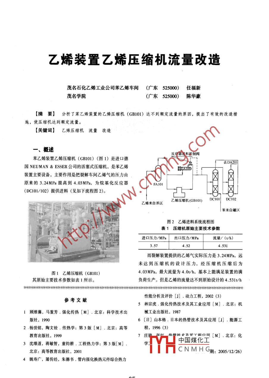 乙烯裝置乙烯壓縮機(jī)流量改造