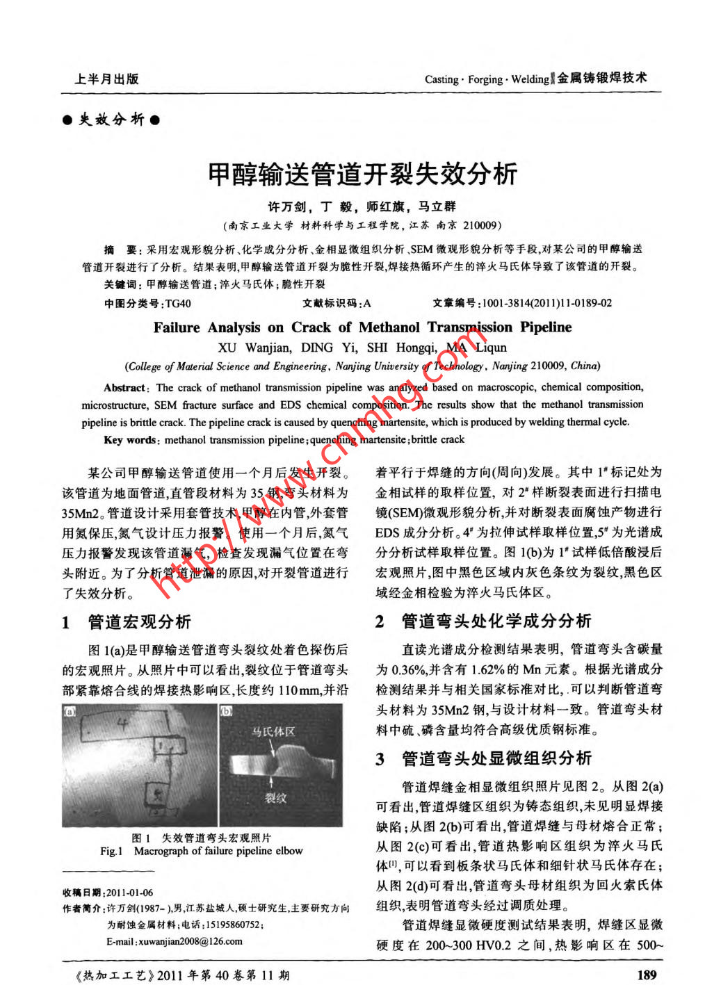 甲醇輸送管道開(kāi)裂失效分析