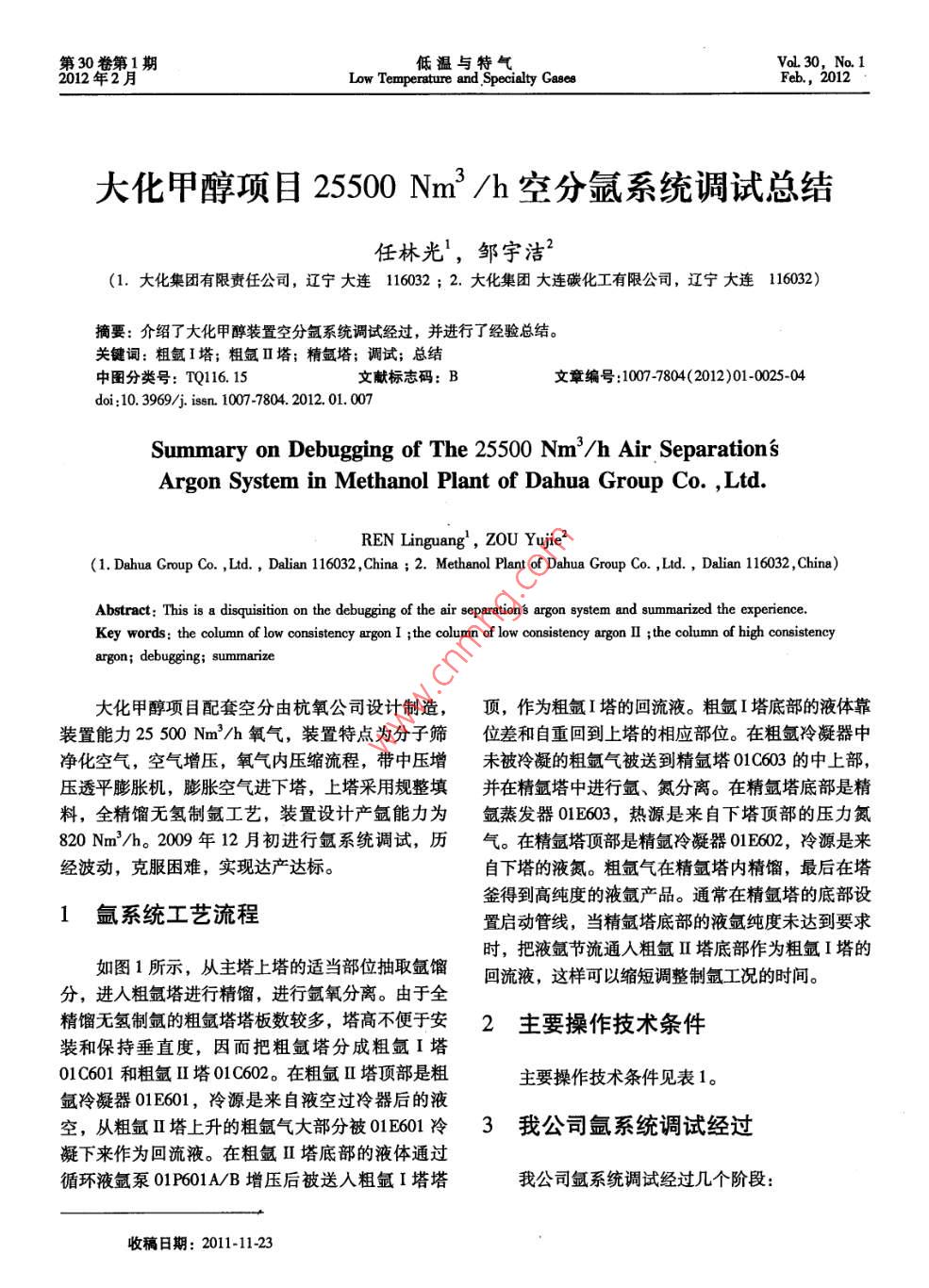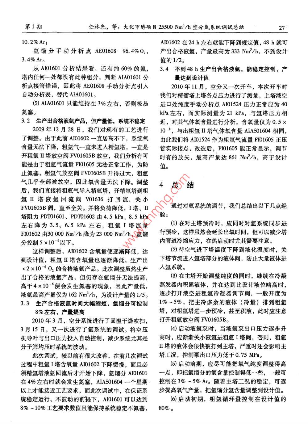 大化甲醇項(xiàng)目25500Nm3/h空分氬系統(tǒng)調(diào)試總結(jié)