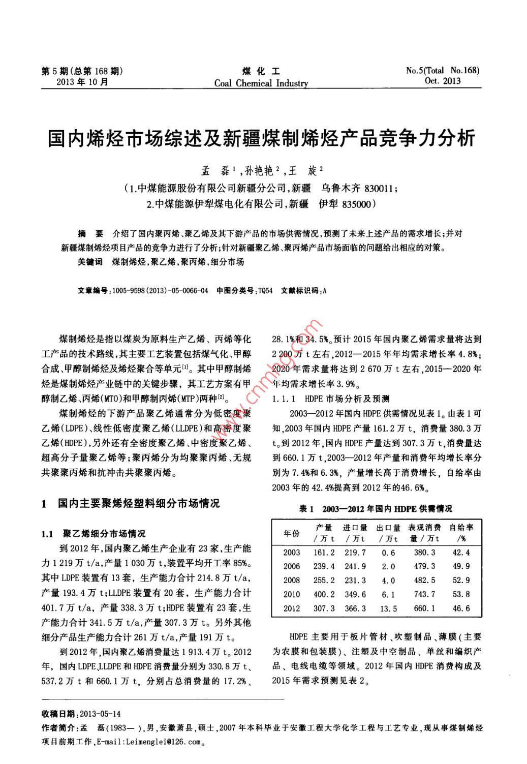 國內(nèi)烯烴市場綜述及新疆煤制烯烴產(chǎn)品競爭力分析