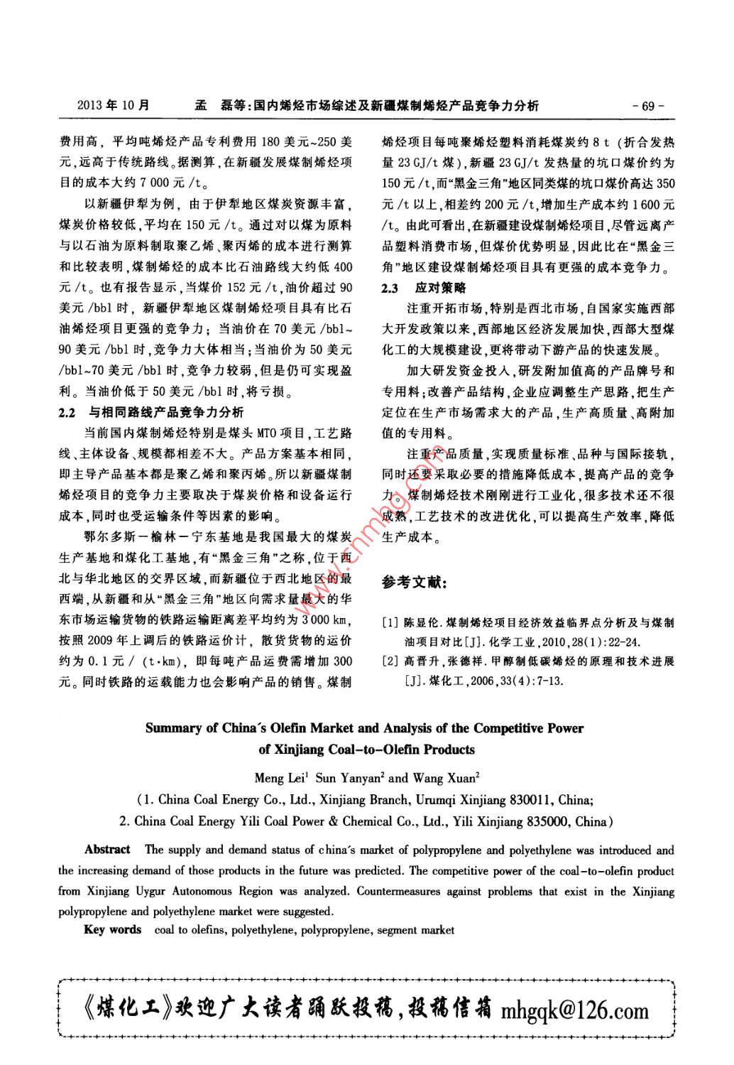 - 期刊名字:煤化工