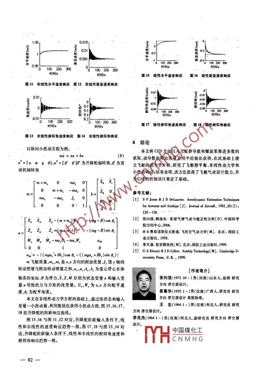 第25卷第6期計(jì)算¨機(jī)仿真2008年6月文章編號(hào):1006-948(2008)06-009-04飛艇動(dòng)力學(xué)仿真張向強(qiáng),姜魯華,王生,李兆杰(中國(guó)科學(xué)院光電研究院,北京100080)摘要?jiǎng)傮w假設(shè)條件下,飛艇動(dòng)力學(xué)行為的核心問(wèn)題之一是如何獲取氣動(dòng)導(dǎo)數(shù)和推進(jìn)系統(tǒng)螺旋槳的性能參數(shù)。針對(duì)靜導(dǎo)數(shù),采用分塊粘結(jié)技術(shù)和0型網(wǎng)格生成結(jié)構(gòu)化貼體網(wǎng)格單元,利用Ssr( Shear Stress Transport)湍流模型進(jìn)行CFD仿真,動(dòng)導(dǎo)數(shù)采用半經(jīng)驗(yàn)的方法附加質(zhì)量采用邊條理論計(jì)算。螺旋槳性能參數(shù)采用結(jié)構(gòu)化網(wǎng)格與非結(jié)構(gòu)化網(wǎng)格相結(jié)合的方法,利用旋轉(zhuǎn)機(jī)械CFD軟件計(jì)算。在此基礎(chǔ)上給出了飛艇縱向靜穩(wěn)定性的判別方法建立飛艇非線性動(dòng)力學(xué)方程和小擾動(dòng)方程。為驗(yàn)證上述方程,給出了縱向階躍響應(yīng),仿真結(jié)果表明該方法是有效的,可用于飛艇后續(xù)的飛行控制研究關(guān)鍵詞:飛艇;氣動(dòng)導(dǎo)數(shù);計(jì)算流體動(dòng)力學(xué);螺旋槳中圖分類(lèi)號(hào):V211文獻(xiàn)標(biāo)識(shí)碼:ADynamic Equations of AirshipZHANG Xiang-qiang, JIANG Lu-hua, WANG Sheng, LI Zhao-jieAcademy of Opto-Electronics, Chinese Academy of Sciences, Beijing 100080, China)ABSTRACT: When only rigid body motion is considered, the most important thing of dynamics research of airship isow to get the aerodynamic derivative and the thrust of propulsion system. The CFD method of static derivative waspresented by using Shear Stress Transport Model(SST)and structured body-fitted grid generated from multiblock, merge-block and 0-grid. The dynamic derivative was obtained by semi empirical method. The added masswas obtained by using slicing theory. The CFD method of propulsion system was put in practice by structured grid andnon structured grid. Based on obtained aerodynamic derivative and the thrust of propulsion system, the characteristicof static stability was researched. The nonlinear dynamic equations of airship were assembled. The linear equationsofmotion were assembled on perturbation theory. After getting the trimmed state by static equations, the step input re-sponse of longitudinal motion was represented for verification. The result shows that this method is useful and can beused in the research of fight controlKEYWORDS: Aerostat; Aerodynamic derivative; CFD; Propeller程,小擾動(dòng)方程,并給出了仿真結(jié)果。1引言飛艇作為浮空器( Lighter Than Air Vehicle,LrA)的重要2飛艇坐標(biāo)系和受力情況成員與HTA( Heavier Than Air)中的飛機(jī)相比,其動(dòng)力學(xué)方飛艇的基本參數(shù):長(zhǎng)5米,最大直徑128米,尾翼采用程需計(jì)入浮力和附加質(zhì)量的影響;與無(wú)動(dòng)力和舵面的系留氣十字布局,翼型采用NACA0010。球相比沒(méi)有與球體一起耦合運(yùn)動(dòng)的系纜,方程的求解不會(huì)飛艇的坐標(biāo)系如圖1所示,幾何中心c處為體軸系的原遭遇困難。飛艇動(dòng)力學(xué)的核心問(wèn)題之一是如何獲得氣動(dòng)導(dǎo)點(diǎn);氣動(dòng)力采用風(fēng)軸系表示,參考點(diǎn)取艇身頂點(diǎn),與體軸系數(shù)和螺旋槳性能參數(shù)。國(guó)內(nèi)外研究人員一般通過(guò)風(fēng)洞試驗(yàn)的夾角為攻角a和側(cè)滑角B;重力mg作用點(diǎn)g為重心,浮力和半經(jīng)驗(yàn)方法,本文以正在設(shè)計(jì)的的試驗(yàn)飛艇為模型,對(duì)B作用點(diǎn)為浮心,螺旋槳推力T。靜動(dòng)導(dǎo)數(shù)和螺旋槳性能參數(shù)采用CFD方法,動(dòng)導(dǎo)數(shù)和附加質(zhì)量采用半經(jīng)驗(yàn)法,在此基礎(chǔ)上建立飛艇非線性動(dòng)力學(xué)方3中國(guó)煤化工3.1CNMHG基金資助:中國(guó)科學(xué)院創(chuàng)新項(xiàng)目:平流層關(guān)鍵技術(shù)研究除風(fēng)洞試驗(yàn)外,飛艇靜導(dǎo)數(shù)的獲取方法有估算和CFD收稿日期:2007-05-22修回日期:200-05-24計(jì)算兩種,對(duì)于前者可借助氣動(dòng)力手冊(cè)將飛艇分為旋成體的3.2動(dòng)導(dǎo)數(shù)動(dòng)導(dǎo)數(shù)采用文獻(xiàn)[3]的方法推導(dǎo)過(guò)程如下:計(jì)算體各部分由于角速度而引起的速度增量,攻角增量,氣動(dòng)力和力矩增量,最后將該力和力矩表示為動(dòng)導(dǎo)數(shù)的函數(shù)。取無(wú)因次角速度m=v,平尾縱向動(dòng)導(dǎo)數(shù)m=-1.8C圖1飛艇坐標(biāo)系和受力示意圖取無(wú)因次角速度:可=,可=。垂尾動(dòng)導(dǎo)數(shù)機(jī)身與尾翼分別估算然后組裝;也可采用飛艇專(zhuān)用的估算t)2公式(。它們的可信度需要風(fēng)洞試驗(yàn)評(píng)估。本文介紹CFD(3)湍流模型選定的情況下,CFD計(jì)算的可信度取決于網(wǎng)格存在ω,時(shí),m,計(jì)入球身阻尼,垂尾加球身動(dòng)導(dǎo)數(shù):形式和質(zhì)量,本文采用分塊、粘結(jié)技術(shù),每塊( Block)采用o)2網(wǎng)格技術(shù),生成結(jié)構(gòu)化貼體網(wǎng)格。為模擬邊界層內(nèi)的摩擦力,生成網(wǎng)格時(shí)需要滿足兩個(gè)條件邊界層內(nèi)節(jié)點(diǎn)之間的最小距離滿足y‘條件和邊界層內(nèi)的節(jié)點(diǎn)個(gè)數(shù)大于10。本文采用的網(wǎng)格劃分技術(shù)可保證上述式中S為飛艇的特征面積和長(zhǎng)度S,S為平尾垂尾的面積L,平尾垂尾壓心至體軸系原點(diǎn)的長(zhǎng)度,C為尾翼的升線斜率3.3附加質