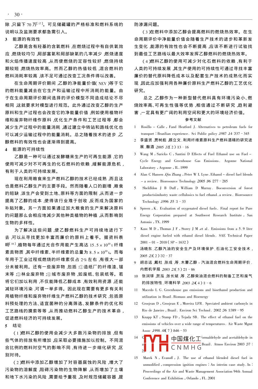 業(yè)安全與環(huán)保006年第32卷第10期Industrial Safety and Environmental ProtectionOctober 2006環(huán)境工程燃料乙醇應(yīng)用對環(huán)境的影響王艷坤1張建強(qiáng)1孟祥明21.西南交通大學(xué)環(huán)境科學(xué)與工程學(xué)院成都610031;2天津大學(xué)環(huán)境科學(xué)與工程學(xué)院天津300072摘要燃料乙醇作為可再生的替代能源被越來越廣泛地利用。從對空氣的彯響、對土堰和地下水的潛在影響、能源的有效性和能源的可持續(xù)性4個方面闡述了燃料乙醇使用對環(huán)境的影響效應(yīng),既說眀了其顯著的優(yōu)勢漢提岀了存在的問題及相關(guān)建議,旨在更充分地發(fā)揮燃料乙醇的能源價值關(guān)鍵詞燃料乙醇環(huán)境能源Effect of Fuel ethanol on EnvironmentWANG Yan-kun ZHANG Jian-qiang MENG Xiang-ming?(1. School of Environmental Science and Engineering Southwest Jiaotong University Chengdu 610031)Abstract As the renewable energy ethanol is used more and more widely. In order to use it effectively the influence of ethanol onenvironment is explained from several aspects such as effects on air potential effects on soil and underwater effectiveness of energy and theustainability of energy. Its obvious advantages are expounded and the existed problems and suggestions are put forward aiming at giving fullplay to energy valueKeywords ethanol fuel environment energy隨著世界人口的增加和更多國家的工業(yè)化能源消費(fèi)穩(wěn)耗45.4億L約占汽油總消耗量的1%3。同年,美國政府步增加而作為主要能源旳石油則日益匱乏這種能源的供提岀到α010年生物燃料在全美能源中所占比重要提高需矛盾必然影響到經(jīng)濟(jì)的發(fā)展和社會的安定因此世界各國倍達(dá)到20%的發(fā)展目標(biāo)。與此同時,瑞典和法國亦以小麥紛紛展開新的替代能源的硏究與開發(fā)其中以燃料乙醇最為等為原料生產(chǎn)燃料乙醇添加到汽油和柴油中應(yīng)用。歐盟也采取了相關(guān)措施促進(jìn)生物燃料使用,計(jì)劃到2005年生物燃20世紀(jì)30年代巴西首先開始大范圍使用乙醇-汽油混料作為交通運(yùn)輸燃料至少占市場份額的2%到2010年末至合燃料口在汽油中摻入2%的乙醇或全部代替汽油。1999少占5.75%到2020年生物質(zhì)乙醇能源在總能源結(jié)構(gòu)中所年巴西乙醇產(chǎn)量達(dá)近130億L除少量出口外其余全部自占比例將提高到8%4。加拿大也將這種混合燃料列入本用1。20世紀(jì)70年代,世界石油危機(jī)后10%乙醇與無鉛汽國的環(huán)境保護(hù)計(jì)劃 Ecologo)5。在我國用玉米生產(chǎn)燃料乙油混合的方法引入美國并在中西部各州占領(lǐng)市場。20世紀(jì)醇已受到政府和相關(guān)部門的高度重視。河南省、吉林省和黑80年代乙醇與柴油混合在技術(shù)上的可行性得到了證明。龍江省等地已開始建立推廣車用乙醇汽油的試點(diǎn)。到1999于是美國開始以玉米生產(chǎn)燃料乙醇并將其應(yīng)用于混合燃年全球乙醇產(chǎn)量已達(dá)330億L其中有58%用作汽車燃料。料。1999年美國乙醇產(chǎn)量達(dá)60億L其中僅運(yùn)輸部門就消可見燃料乙醇作為新的替代能源正得到越來越廣泛的006006060606000000000060000006006060006000000)0000600228e·011鐘秦燃煤煙氣脫硫脫硝技術(shù)及工程實(shí)例,北京:化學(xué)工業(yè)出版社2楚華李愛民李潤東等.湍球塔氣體流動的數(shù)值模擬.中國電力200x11)753王福軍,計(jì)算流體動力學(xué)分析——CFD軟件原理與應(yīng)用,北京清中國煤化工6.02e·0090e+00作者3.79e·00CNMHG水人教授主要從事環(huán)境工程理H5(收稿日期2006-01-10)圖4矢量( vectors圖四川省應(yīng)用基礎(chǔ)項(xiàng)重視其未來的應(yīng)用前景不可估量。但是在利用這種新能源燃料的燃燒對氮氧化物排放的影響尚存在爭議 Spreen and的同時也要充分考慮到它對環(huán)境的影響,做到趨利避害,合 Kass et al.6門的測試表明乙醇-柴油混合燃料使氮氧化物理利用從而最大限度地發(fā)揮其燃料優(yōu)勢。的減少從0到4%-5%不等。美國的監(jiān)測數(shù)據(jù)證明了E10與空氣的影響臭氧濃度增加有關(guān)。胡志遠(yuǎn)等ν在乙醇-汽油混合燃料的任何燃料燃燒在釋放能量的同時都不可避免地向空氣周期評價中得岀除E10外其他濃度的混合燃料所產(chǎn)生的氮中排入副產(chǎn)物乙醇也不例外但不同燃料燃燒產(chǎn)生副產(chǎn)物氧化物均高于純汽油。張潤鐸等0的試驗(yàn)表明乙醇柴油混的種類、數(shù)量和濃度各不相同因此對空氣質(zhì)量的影響程度合燃料較純柴油燃燒排放的氮氧化物有明顯的增加。但氮自然也不同。氧化物的排放除與燃料有關(guān)外還受空氣與燃料比例等因素1.1對顆粒物、一氧化碳和烴類物質(zhì)排放的影響的影響所以乙醇的引入對氮氧化物的排放的影響幅度并不燃料燃燒過程中顆粒物(PMλ一氧化碳(C和烴類物明顯。質(zhì)(CH舶產(chǎn)生主要是由于燃料不完全燃燒而引起的,乙醇1.6對其他有害氣體排放的影響作為一種含氧有機(jī)燃料它的摻入會促進(jìn)混合燃料的燃燒其他一些氣體的排放有的也會給空氣造成污染,例如減少由于燃燒不充分而引起的污染物排放。這一理論在很SO2會引發(fā)硫酸煙霧乙烯、醛類的臭氧活性較高,易造成地多試驗(yàn)中得到了證明 Spreen and Kass et al.6的測試表明面臭氧和光化學(xué)煙霧等。 Marek and evanoff151發(fā)現(xiàn)在柴油中10%和15%的乙醇-柴油混合燃料分別使PM減