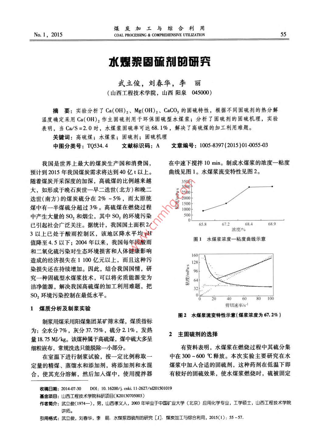 水煤漿固硫劑的研究