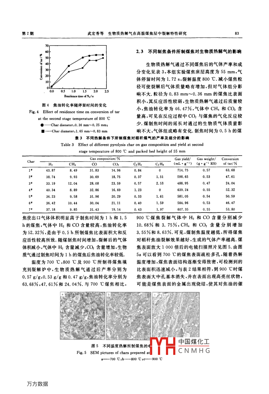生物質(zhì)熱解氣在高溫煤焦層中裂解特性研究