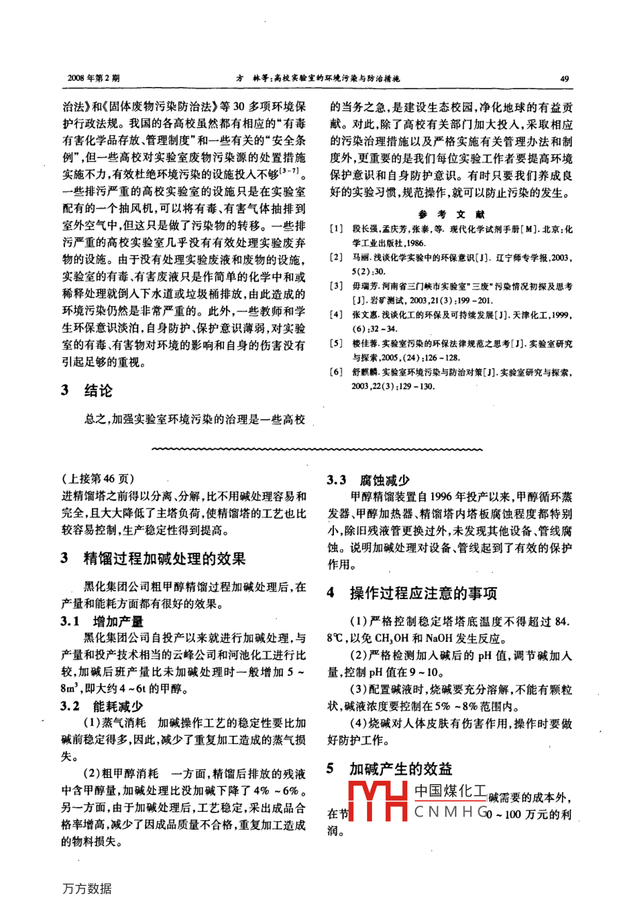 加堿對甲醇精餾改善分析