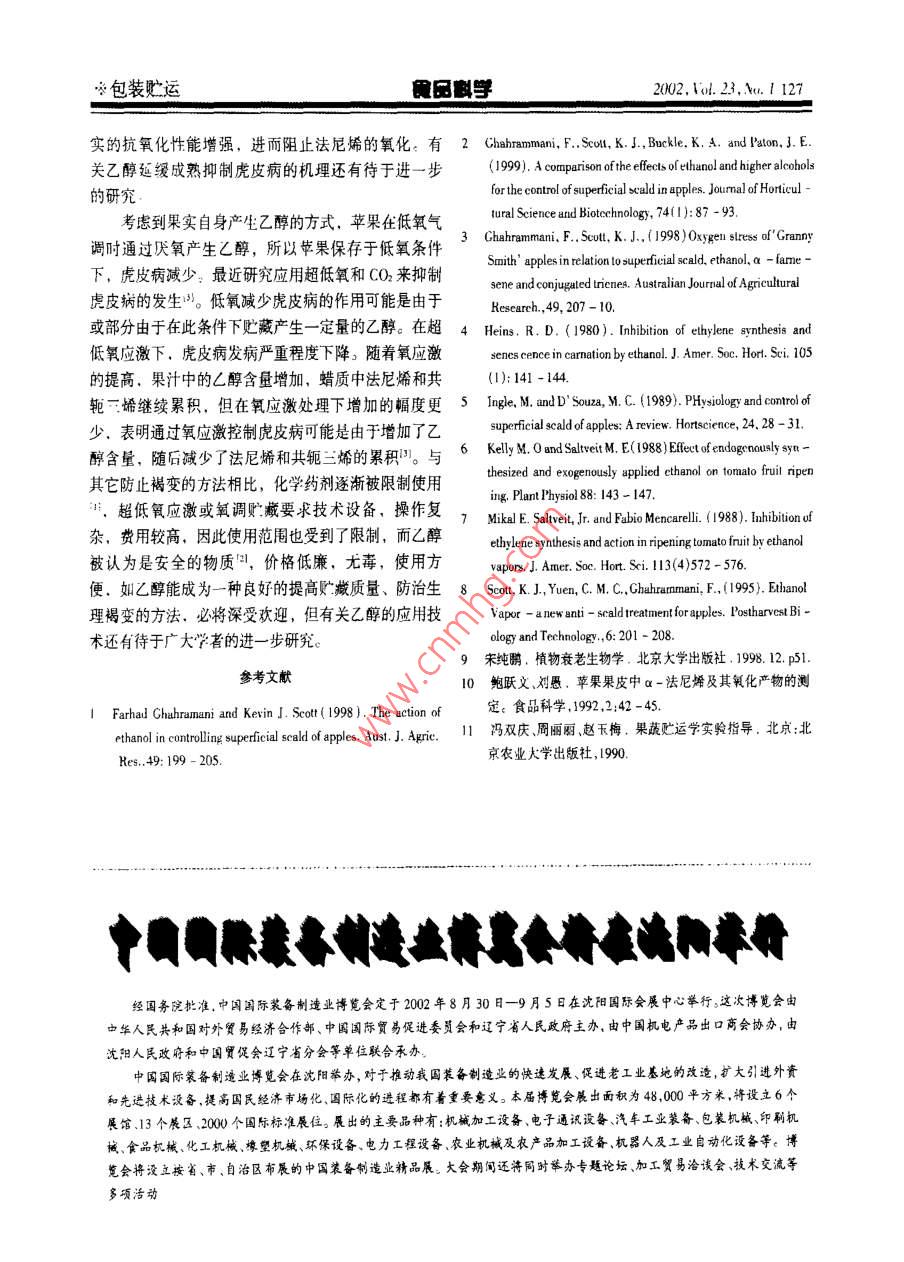 乙醇處理對(duì)貯藏蘋(píng)果虎皮病的影響