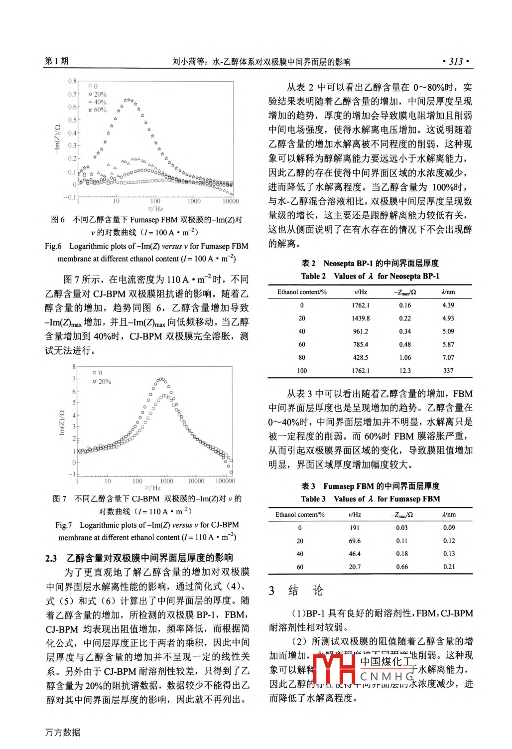 水-乙醇體系對(duì)雙極膜中間界面層的影響