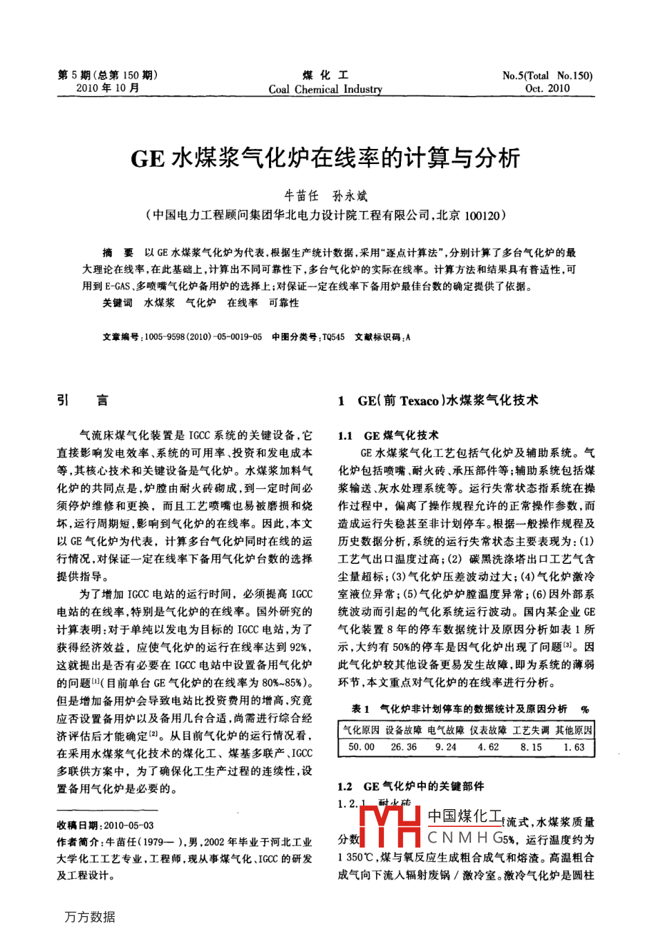 GE水煤漿氣化爐在線率的計(jì)算與分析