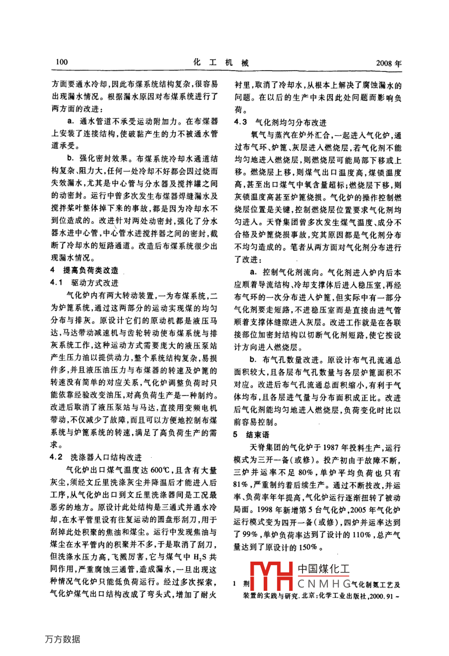 Mark-Ⅳ型魯奇氣化爐的技術(shù)改造