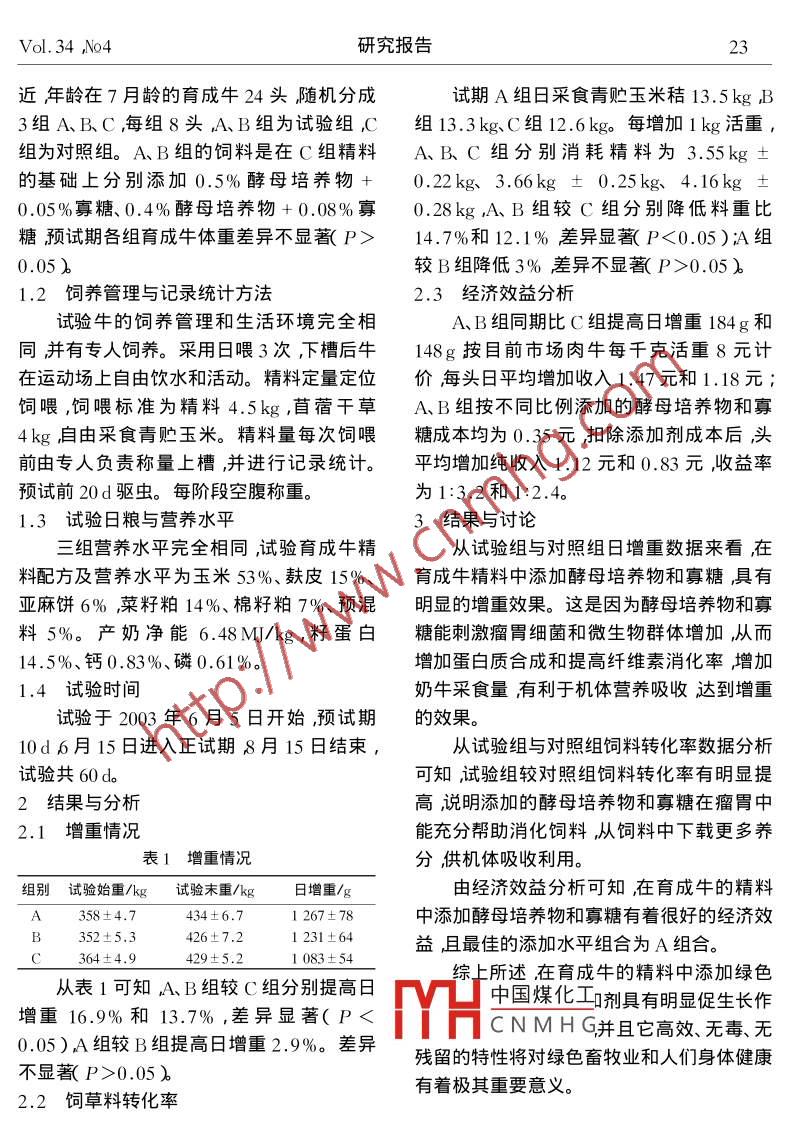 綠色添加劑不同添加水平對育成牛增重效果的影響