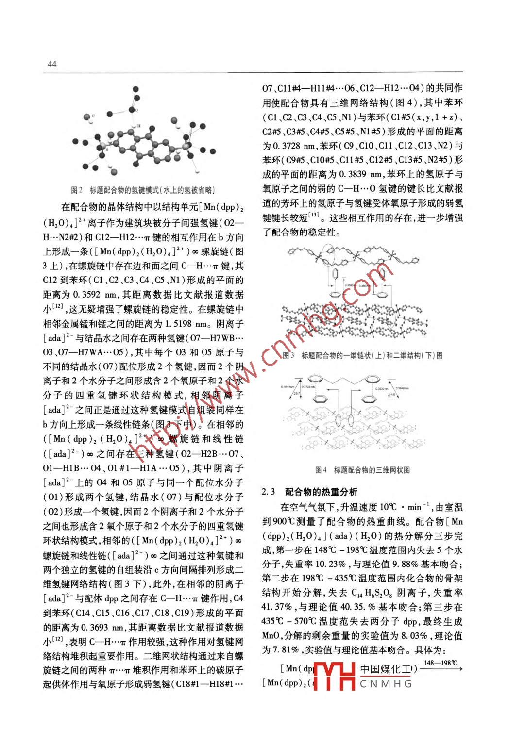 三維超分子化合物[Mn(dpp)2(H2O)4](ada)(H2O)的合成、晶體結(jié)構(gòu)和熱重分析 三維超分子化合物[Mn(dpp)2(H2O)4](ada)(H2O)的合成、晶體結(jié)構(gòu)和熱重分析