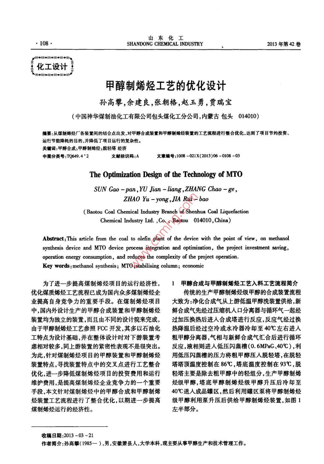 - 期刊名字:山東化工