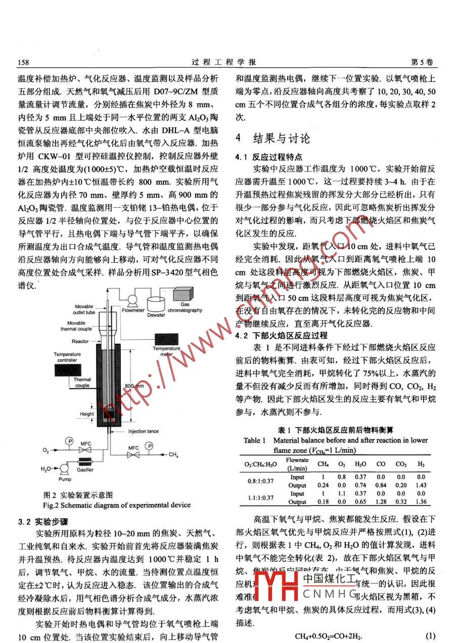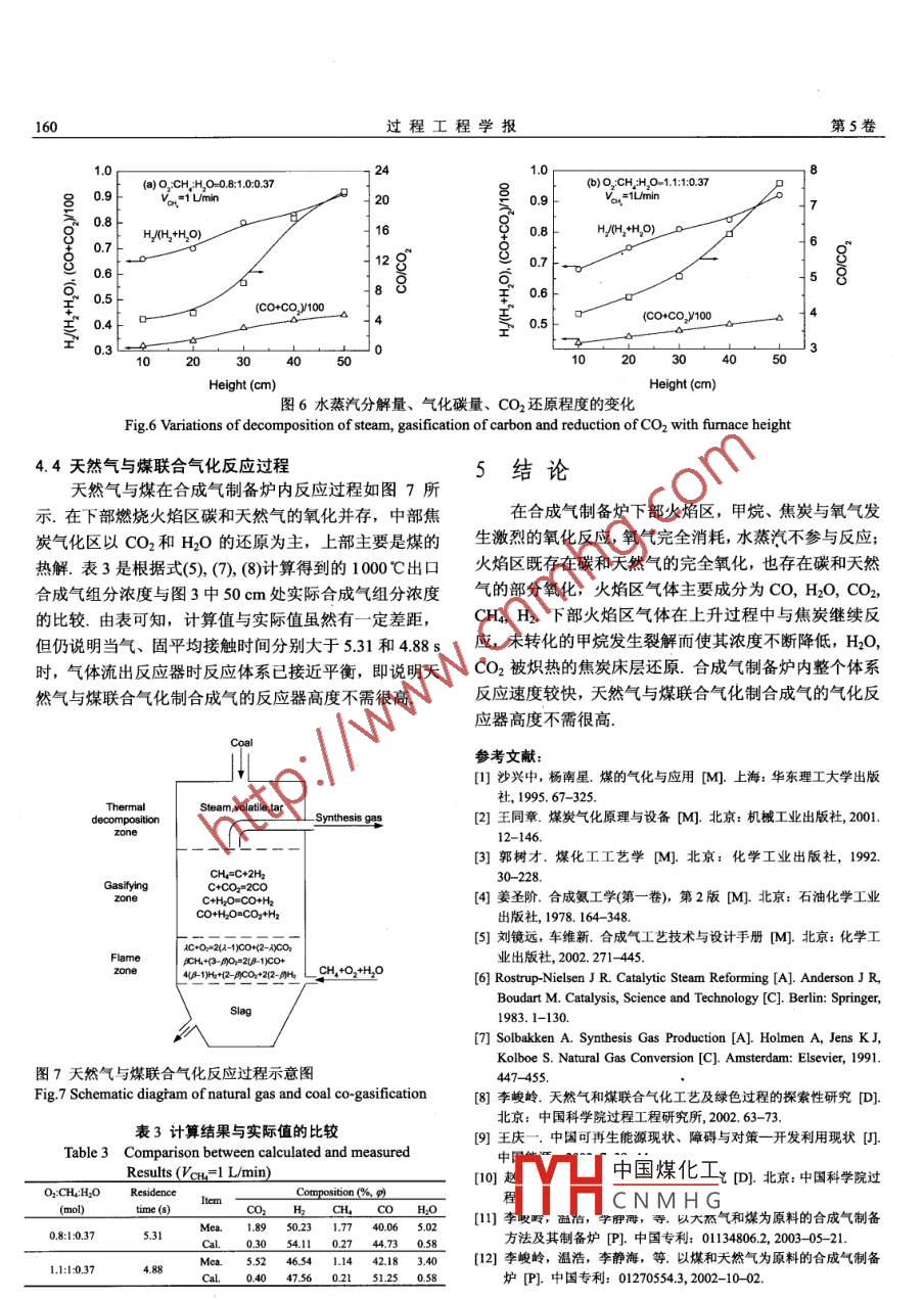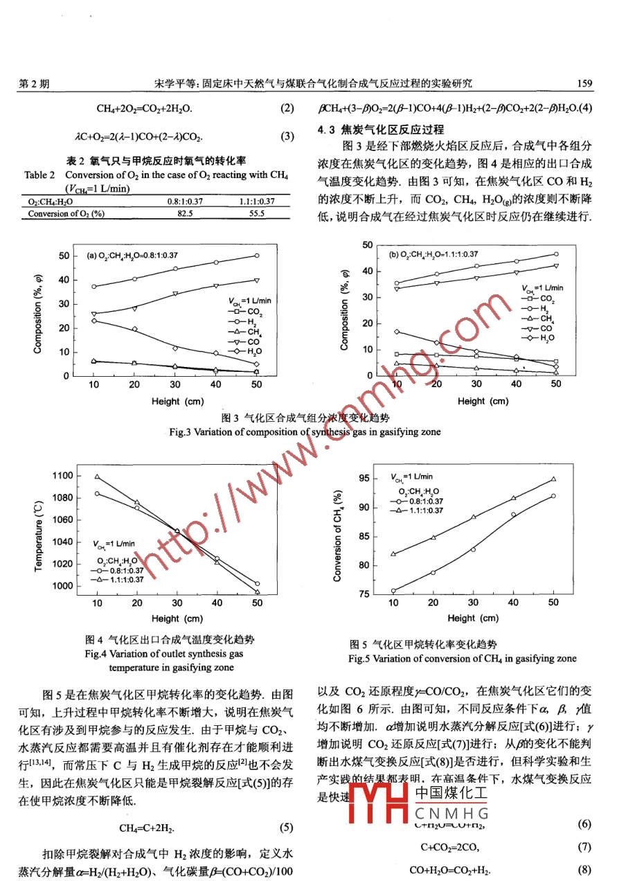 固定床中天然氣與煤聯(lián)合氣化制合成氣反應過程的實驗研究