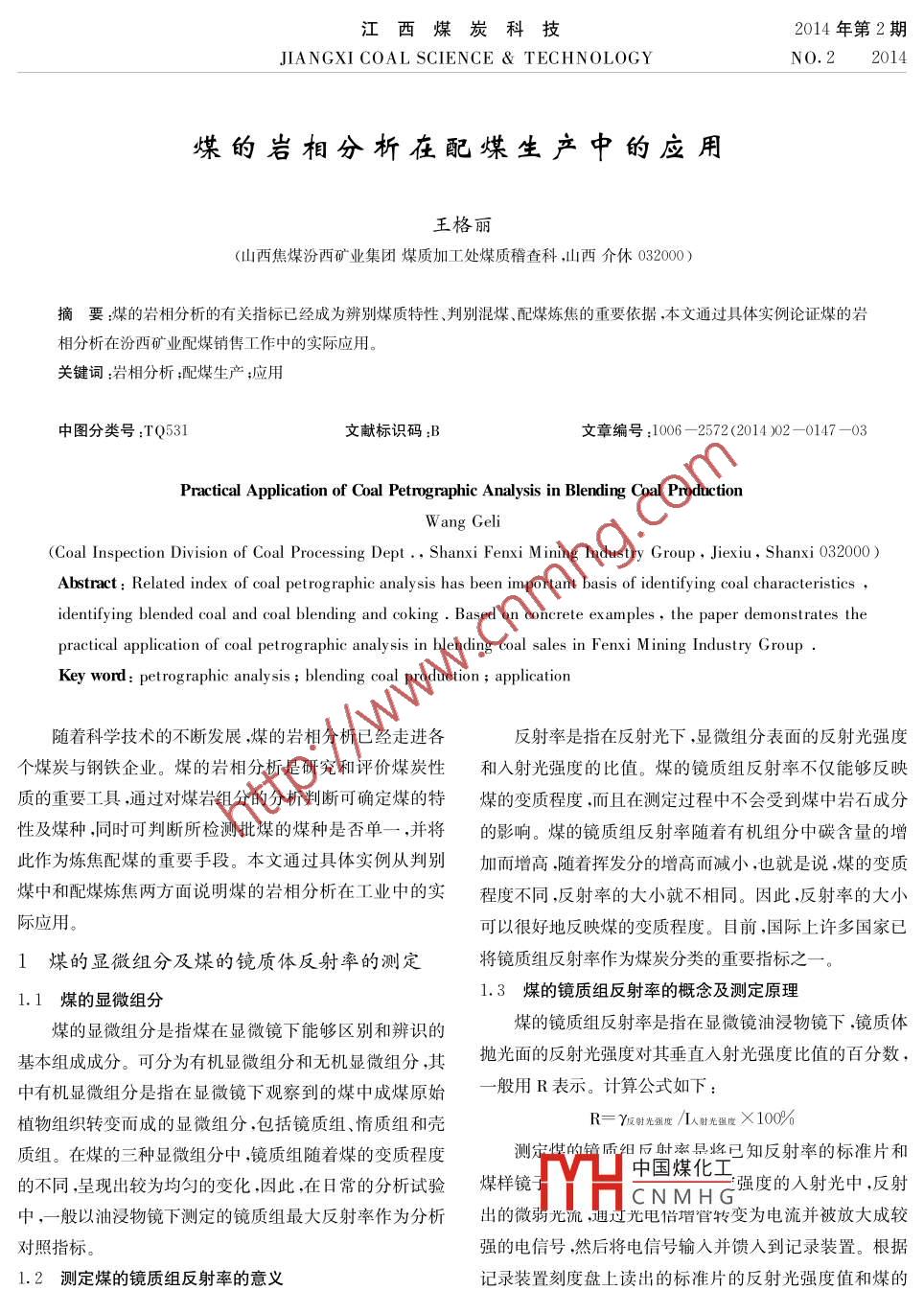 - 期刊名字:江西煤炭科技