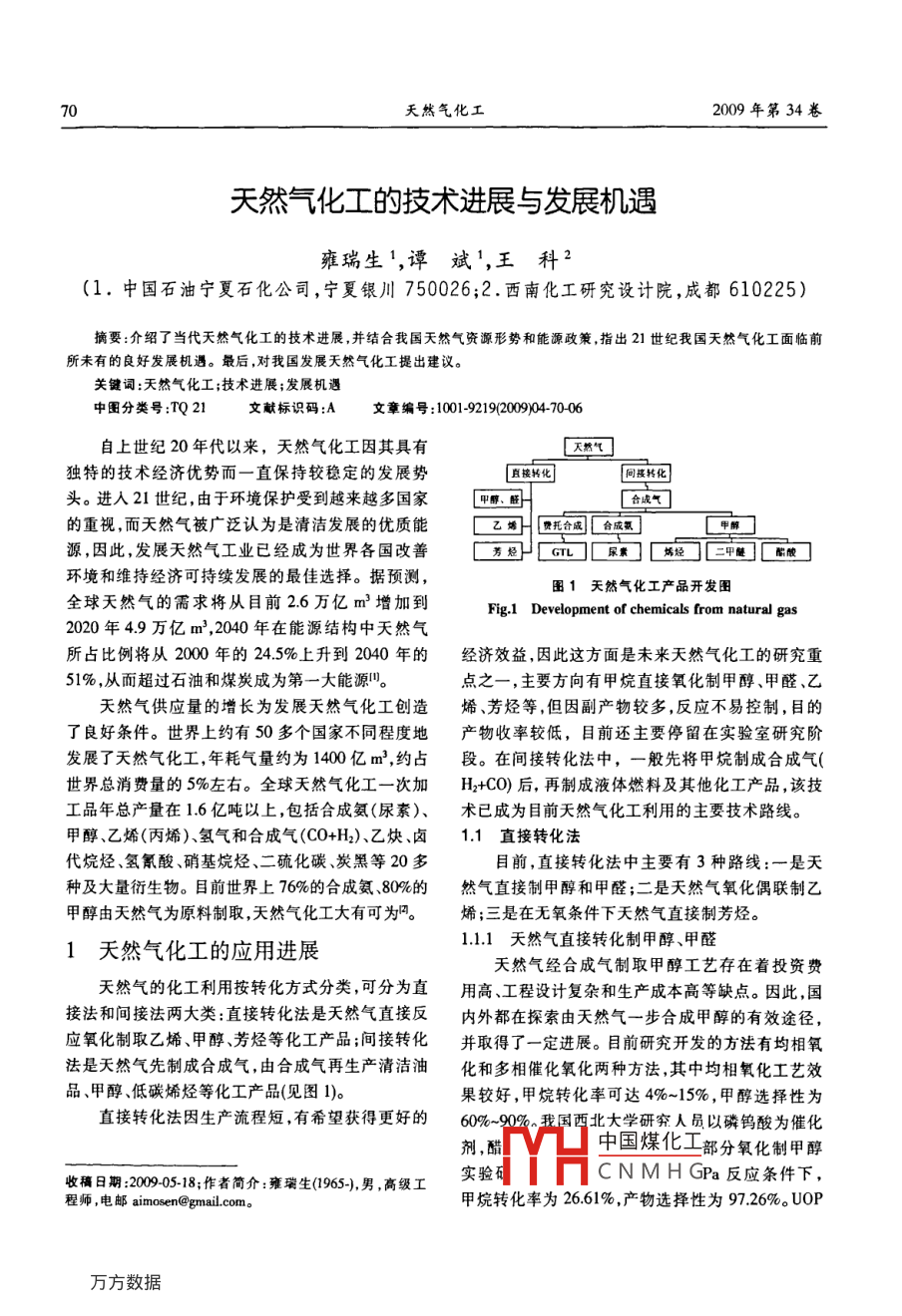 天然氣化工的技術(shù)進(jìn)展與發(fā)展機(jī)遇