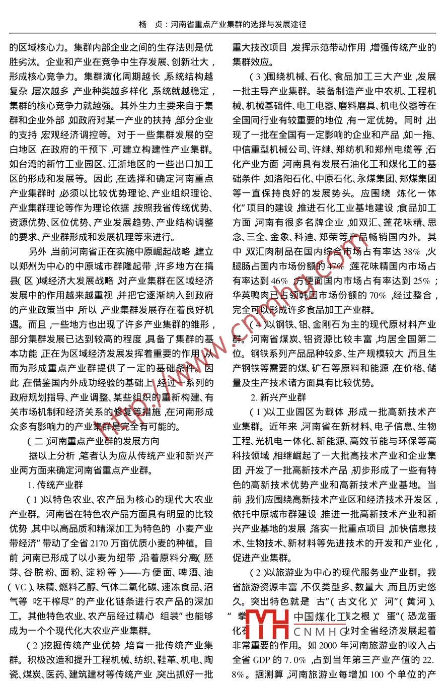 河南省重點(diǎn)產(chǎn)業(yè)集群的選擇與發(fā)展途徑
