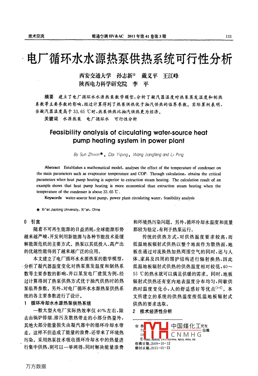 電廠循環(huán)水水源熱泵供熱系統(tǒng)可行性分析