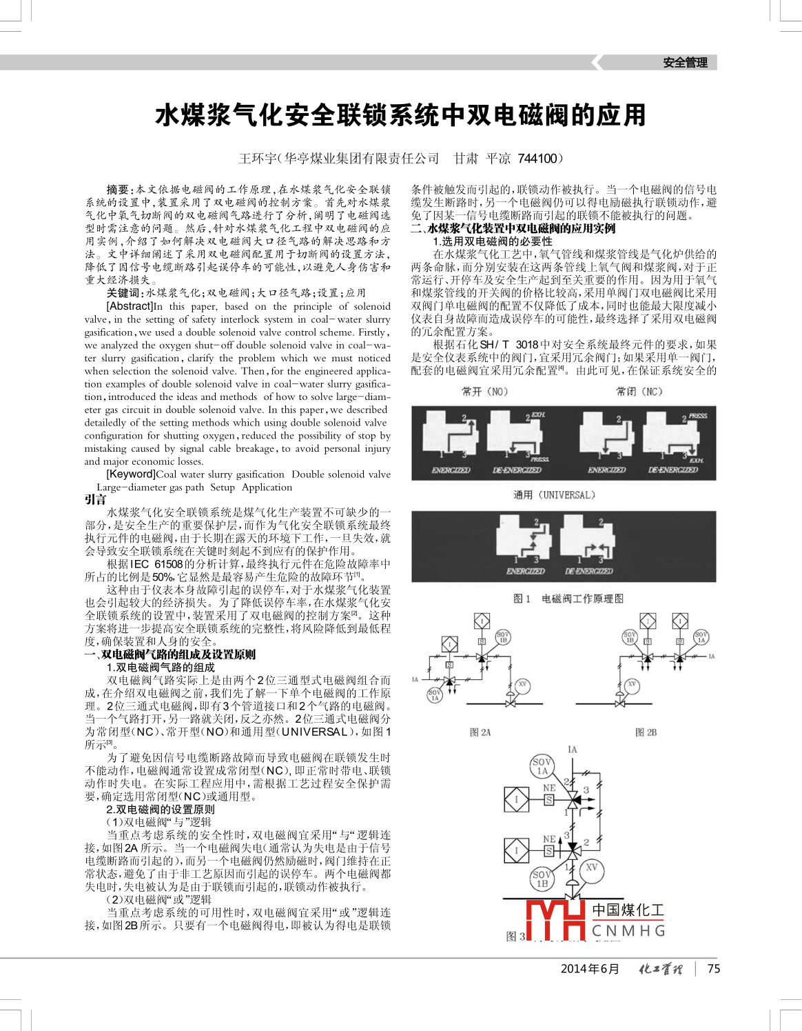 水煤漿氣化安全聯(lián)鎖系統(tǒng)中雙電磁閥的應用