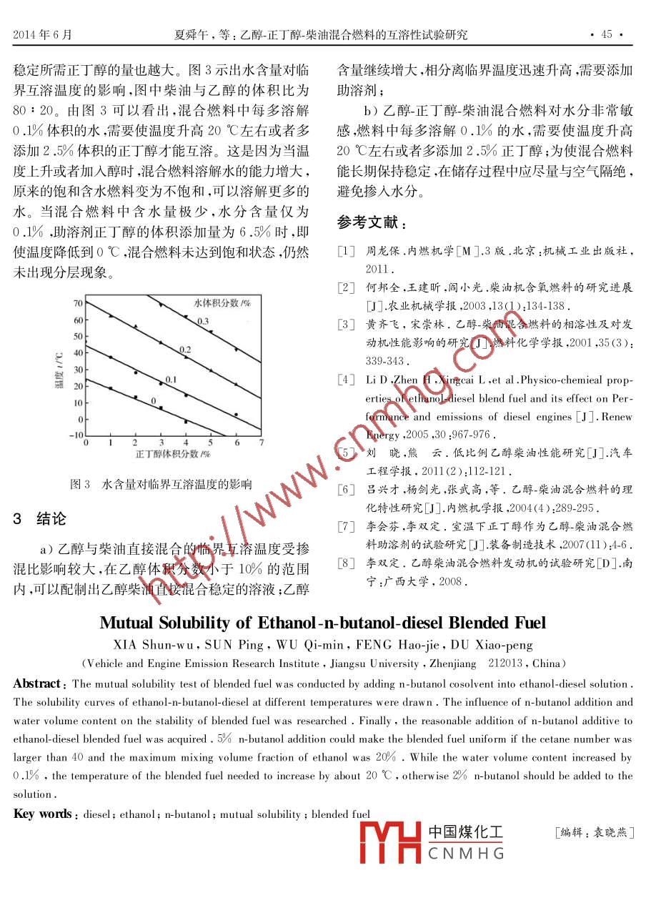 乙醇-正丁醇-柴油混合燃料的互溶性試驗(yàn)研究