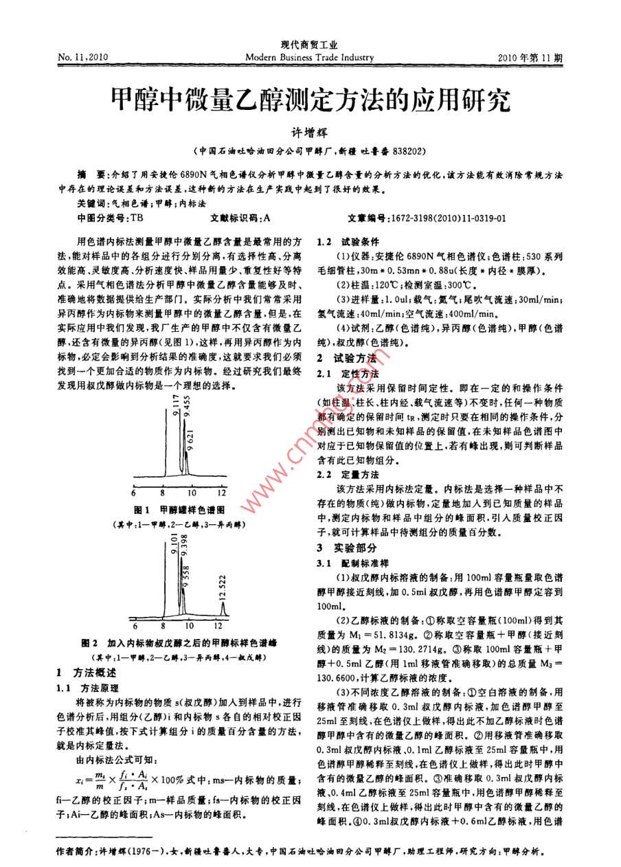 甲醇中微量乙醇測定方法的應(yīng)用研究