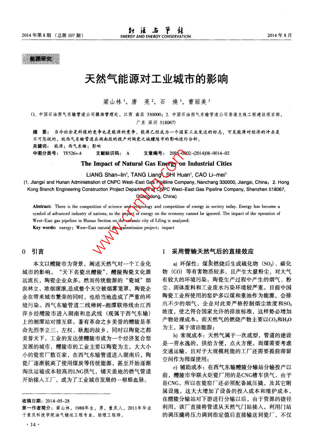 - 期刊名字:能源與節(jié)能