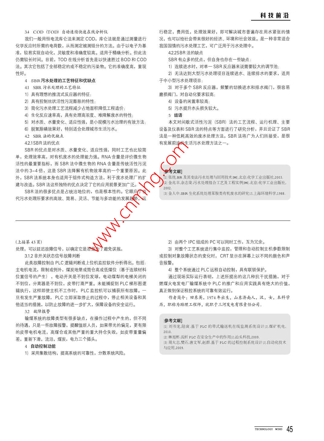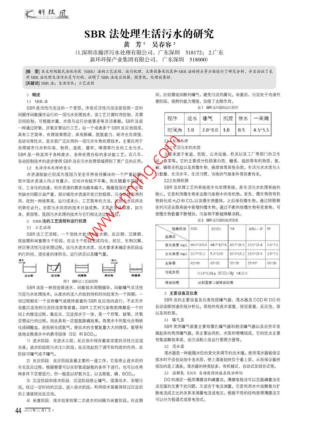 樸技風(fēng)SBR法處理生活污水的研究黃芳1吳春容2(1.深圳市瀚洋污水處理有限公司,廣東深圳518172;2.廣東新環(huán)環(huán)保產(chǎn)業(yè)集團有限公司,廣東深圳5180000墑?wù)猐本文對間歇式活性污泥⑧SBR)法的工藝流程、運行機理、主要設(shè)備及儀表和SBR法的特點等方面進(jìn)行了研究分析,并且論證了采用SBR法處理生活污水是可行的,證明了SBR法適應(yīng)性強,投資低,處理效果好。關(guān)鍵詞]SBR法;生活污水;工藝流程1概述間,應(yīng)輕微或間斷的曝氣,避免污泥的腐化。閑置后,污泥處于內(nèi)源代1.1SBR法射階段,吸附的能力增強,加強了去除作用。SBR是活性污泥法的一個變型。序批式活性污泥法是按照一定時表1SBR反應(yīng)器的運行程序間順序間歇操作運行的一項污水處理技術(shù),該工藝只需時序控制、無需空間控制,可根據(jù)水量、水質(zhì)與運行功能要求等靈活掌握。SBR法是程序進(jìn)水曝氣沉淀排水一周期種通過好氧、厭氧交替運行工藝,由一個或者多個SBR反應(yīng)池組成時聞/1020301.005455.5具有工藝簡單、處理效果穩(wěn)定、具有除磷、脫氮能力、耐沖擊負(fù)荷強.自動化等優(yōu)點,是目前廣泛應(yīng)用的一項污水生物處理技術(shù)。主要應(yīng)用于22處理機理處理城市污水和印染、制藥、造紙、屠宰、啤酒等行業(yè)的工業(yè)污水。221生活污水的水質(zhì)SBR是一種適用于各種廢水、各種處理目標(biāo)的多功能工藝。近幾年,主要來源于家庭、醫(yī)院、公共設(shè)施、機關(guān)以及工廠等部門的衛(wèi)生自動控制技術(shù)的進(jìn)步使得SBR法在污水處理領(lǐng)域得到了更廣泛的應(yīng)用。間、食堂等。它的主要成分包括蛋白質(zhì)、糖類、脂肪等有機物質(zhì),氬12生活污水處理的意義硫、磷等無機鹽以及其微生物、病原體等其他雜質(zhì)。生活污水水質(zhì)與人水資源短缺已經(jīng)成為我國乃至全世界亟待解決的一個嚴(yán)重問題口數(shù)量、生活水平、生活習(xí)慣、當(dāng)?shù)氐臍夂驐l件等因素有關(guān)而中國水資源人均占有量少,空間分布極不平衡。而且隨著中國城市22.2處理機理化、工業(yè)化的加速,對水資源的需求也越來越大。隨著我國許多大中城SBR法處理工藝的系統(tǒng)是生化處理系統(tǒng),是生活污水處理系統(tǒng)的市缺水問題日益嚴(yán)重,部分城市水資源開發(fā)已到極限,污水處理后再利核心。它是利用微生物來去除污染物中的有機物。首先,微生物將有機用,找到一種效率高,運行成本少,工藝簡單的方法,達(dá)到中水回用目物轉(zhuǎn)化成H2O和CO2以及微生物菌體,之后保存微生物。通過排除剩的勢在必行。目前污水回用的技術(shù)日益成熟,尤其在發(fā)達(dá)國家,如日余的污泥去除系統(tǒng)中新增的微生物。通過不斷的給微生物補充食物,可本、美國等,我國污水處理的技術(shù)與它們相比還比較落后。使微生物數(shù)量不斷增加,污染物不斷被降解消耗。2sBR法的工藝流程和運行機理表2SBR反應(yīng)器的處理效果21工藝流程檢翻項目CBODsBR法工藝流程,一個池體大致分為進(jìn)水期、反應(yīng)期、沉降期、測點排放期和閑置期5個階段,在這5個階段完成均化、初沉、生物沉解終沉等活性污泥處理過程。由污水進(jìn)水水質(zhì)、出水要求來確定各階段運進(jìn)水求度mA02004471276197265|150241671的行時間、混合液的體積化,運行狀態(tài)以及曝氣量出水體度me|10-32s2136135152|150241671去除乎8s-933305567污泥負(fù)荷水0.14020kE BODs/kg MSSd圖1SBR法工藝流程圖排標(biāo)準(zhǔn)達(dá)到國家二級排放標(biāo)準(zhǔn)SBR法是一種按連續(xù)進(jìn)水、間歇排水周期循環(huán),間歇曝氣式活性污泥污水處理技術(shù)。從廢水的流入開始到待機時間結(jié)束為一個周期,3主要設(shè)備及儀表切過程都在一個設(shè)有曝氣或攪拌裝置的SBR反應(yīng)池內(nèi)進(jìn)行,不必另外SBR法的主要設(shè)備及儀表包括曝氣器、潷水器及COD和DO的沉淀池和污泥回流泵等裝置。SBR工藝對污染物質(zhì)降解是一個時自動連續(xù)快速在線分析儀。其他的有進(jìn)水裝置、排泥裝置、反應(yīng)池、泵間上的推流過程,集反應(yīng)、沉淀排水于一體,是一個好氧、缺氧、厭氧以及風(fēng)機等。交替運行的過程,因此具有一定脫氮除磷效果。將廢水中的氮化合物轉(zhuǎn)31曝氣器化成硝酸鹽,進(jìn)而轉(zhuǎn)化成氮氣,使出水的含氨氮量大大的降低,能夠有SBR常用曝氣裝置主要有微孔曝氣器和射流曝氣器以及近些年發(fā)效地去除廢水中的懸浮固體(SS)和BOD5展起來的兩用曝氣器。其主要由風(fēng)機、水泵和噴嘴組成,它的優(yōu)點主要)進(jìn)水階段:在進(jìn)水之前,反應(yīng)池中殘存著高濃度的活性污泥混有氧溶解效率高、動力消耗小及運行管理方便等。合液。進(jìn)水階段即污水注入階段,反應(yīng)池起到了調(diào)節(jié)和均質(zhì)的作用,此32潷水器潷水器是一種能隨水位的變化來調(diào)節(jié)的出水堰。使用潷水器能保證2)反應(yīng)階段:反應(yīng)階段是最主要的一道工序,它是停止進(jìn)水后的排水時不會擾動池中各水層,使上清液始終位于最上層,從而保證最終生化反應(yīng)過程,根據(jù)需要可以在好氧或缺氧的條件下進(jìn)行,也可以在兩排出的是上清液。潷水器的種類較多,有機械式、自動式及組合式等