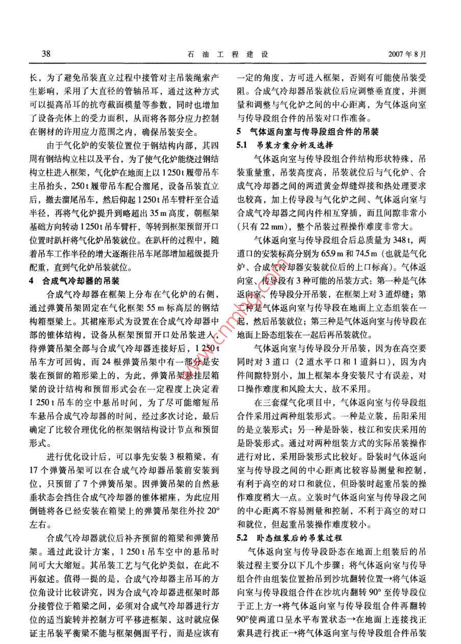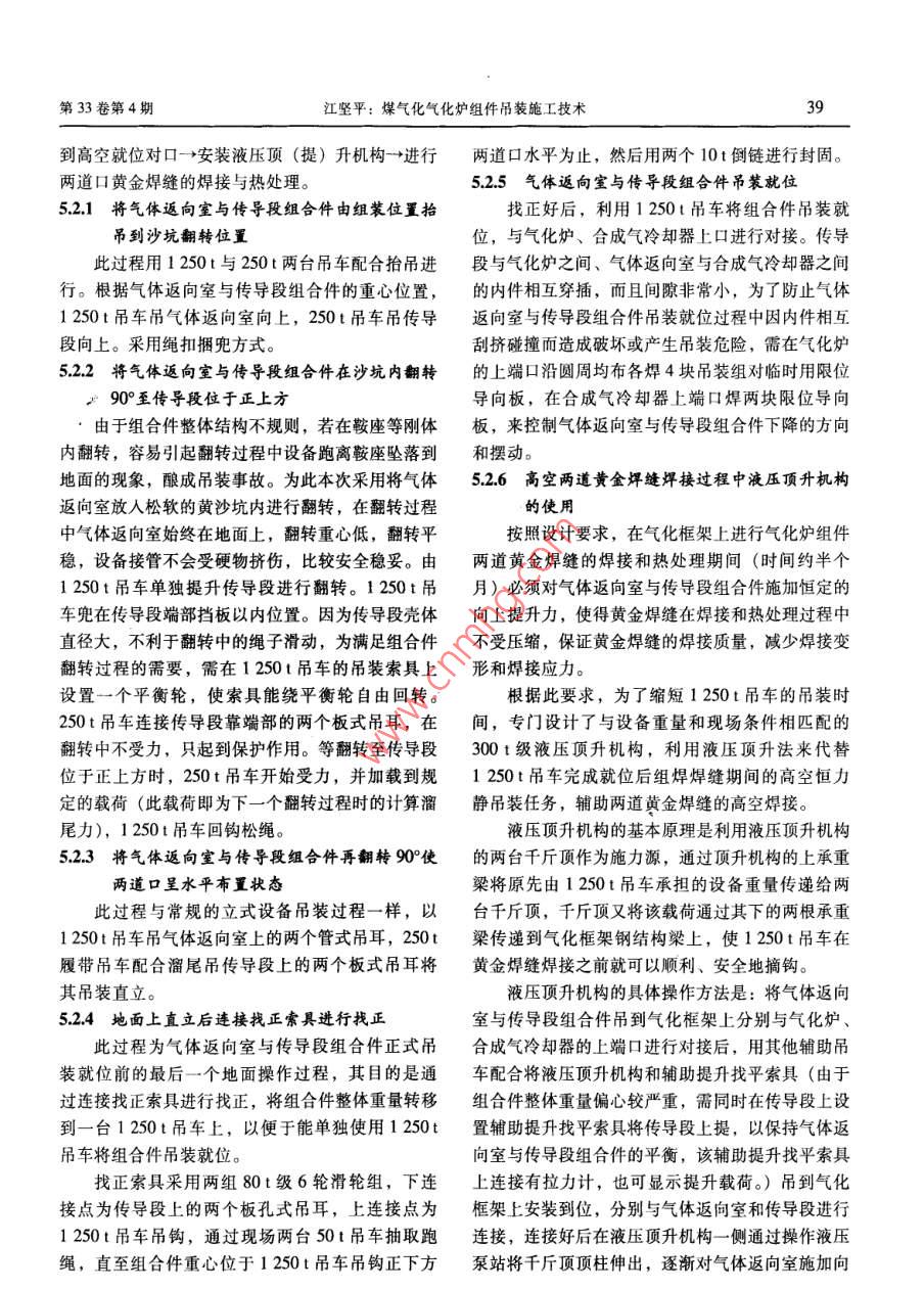 煤氣化氣化爐組件吊裝施工技術(shù)