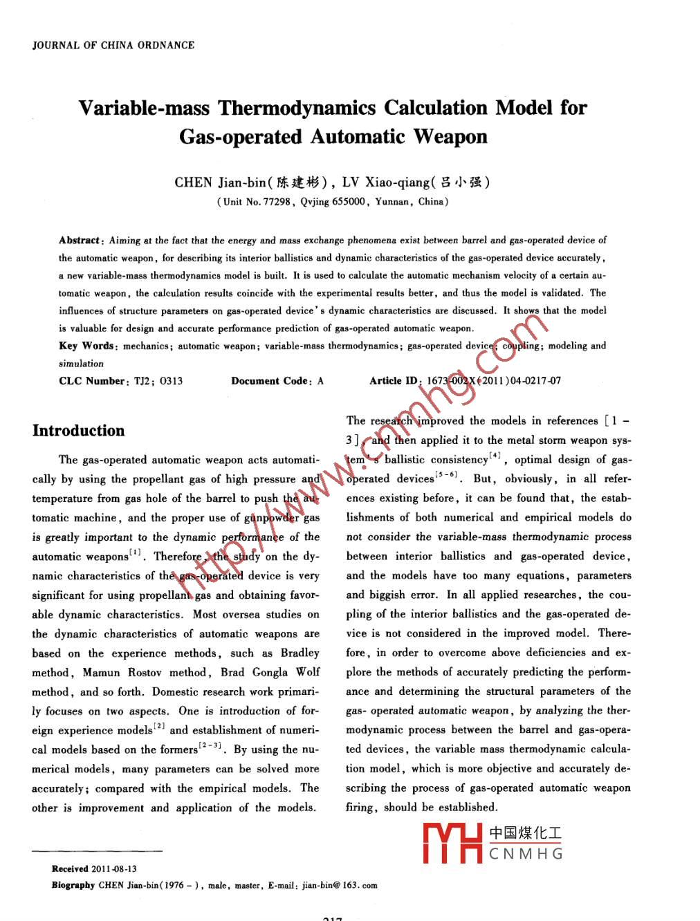 - 期刊名字:兵工學(xué)報(bào):英文版