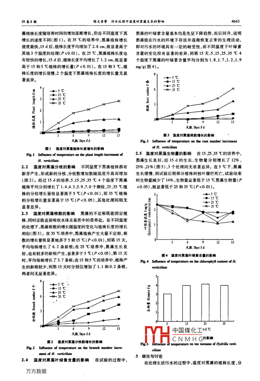 污水處理中溫度對(duì)黑藻生長(zhǎng)的影響