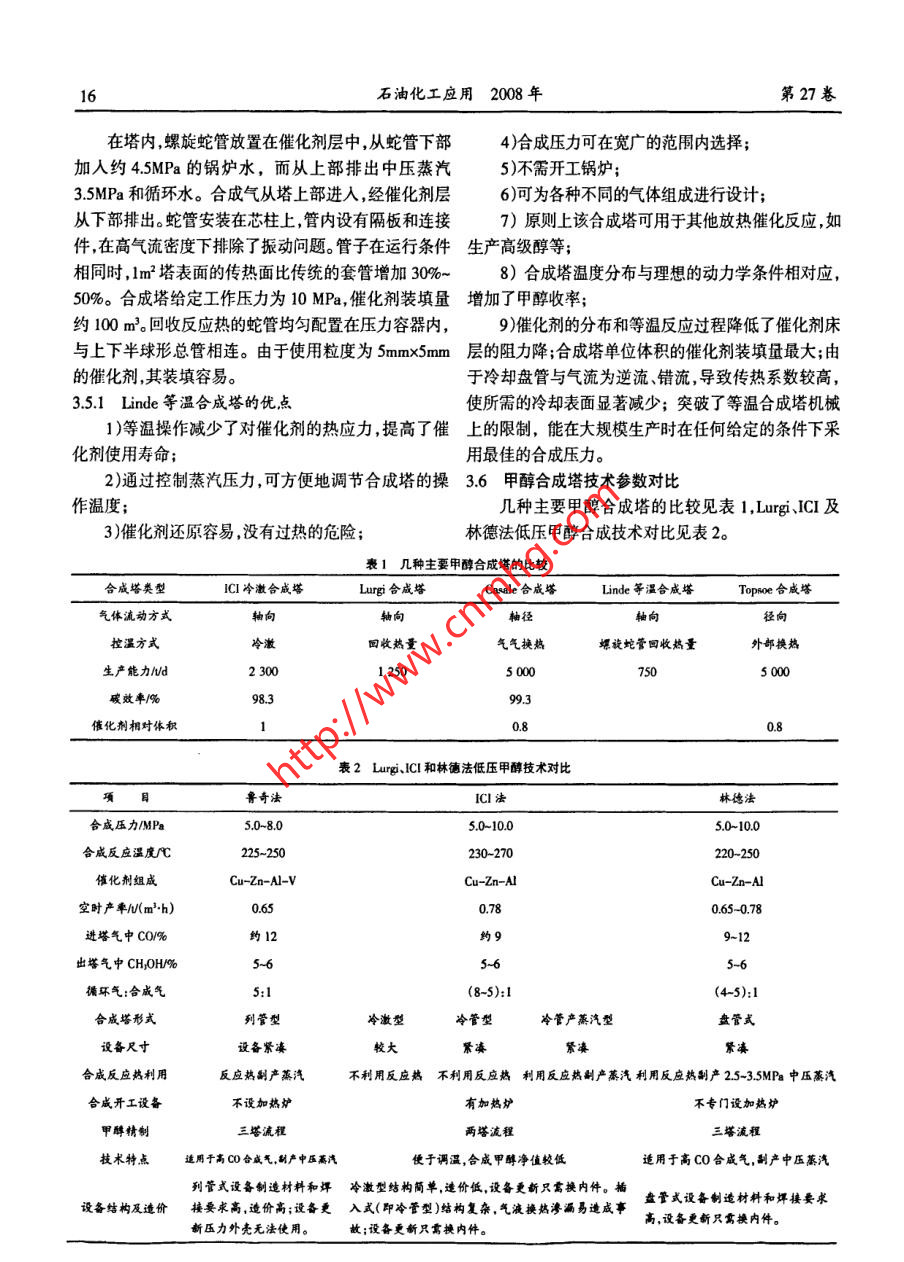 Lurgi和ICI低壓甲醇合成工藝比較 2020-03-17