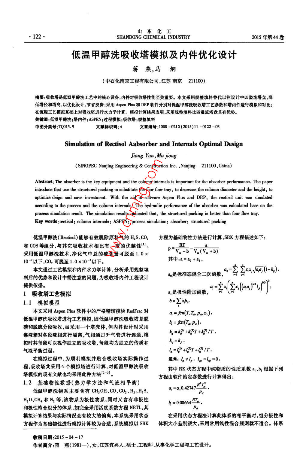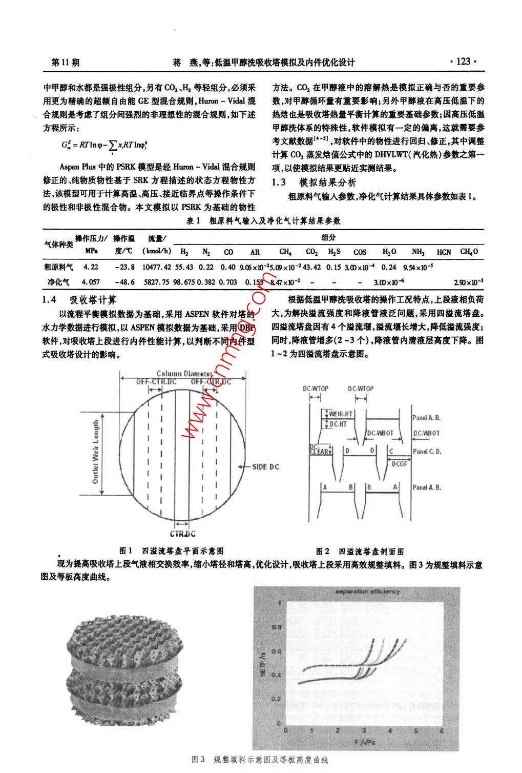 低溫甲醇洗吸收塔模擬及內(nèi)件優(yōu)化設(shè)計(jì)