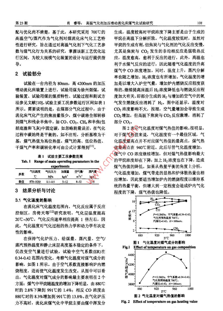 高溫氣化劑加壓噴動(dòng)流化床煤氣化試驗(yàn)研究