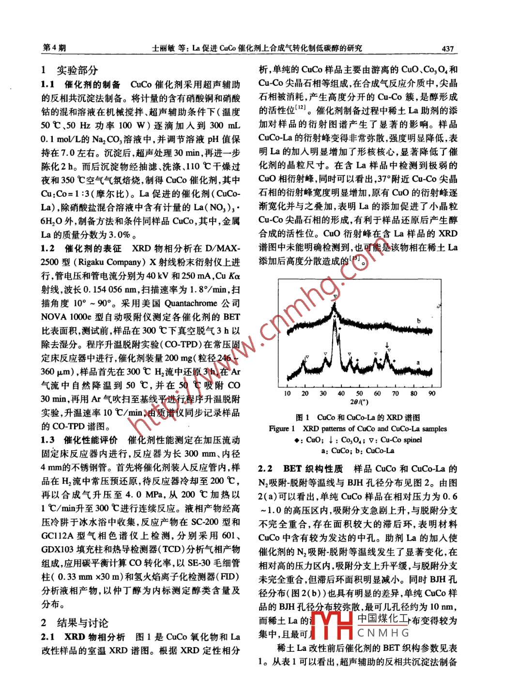 La促進(jìn)CuCo催化劑上合成氣轉(zhuǎn)化制低碳醇的研究