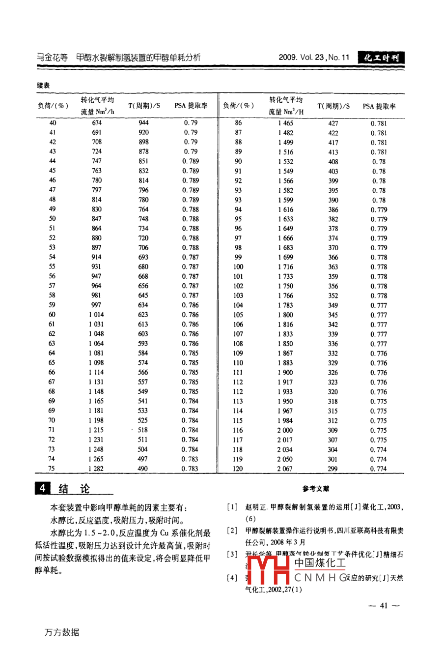 甲醇水裂解制氫裝置的甲醇單耗分析