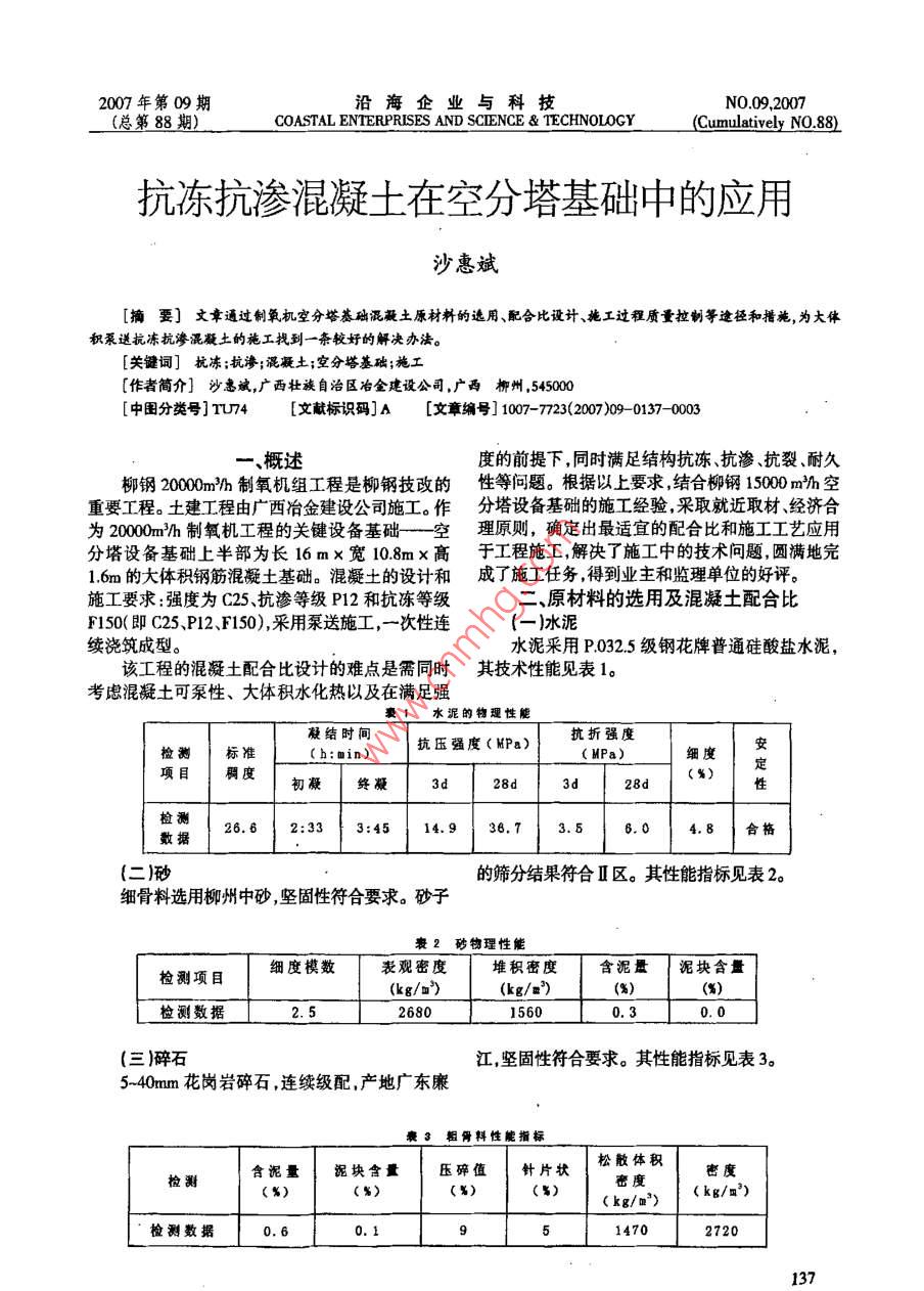 抗凍抗?jié)B混凝土在空分塔基礎(chǔ)中的應(yīng)用