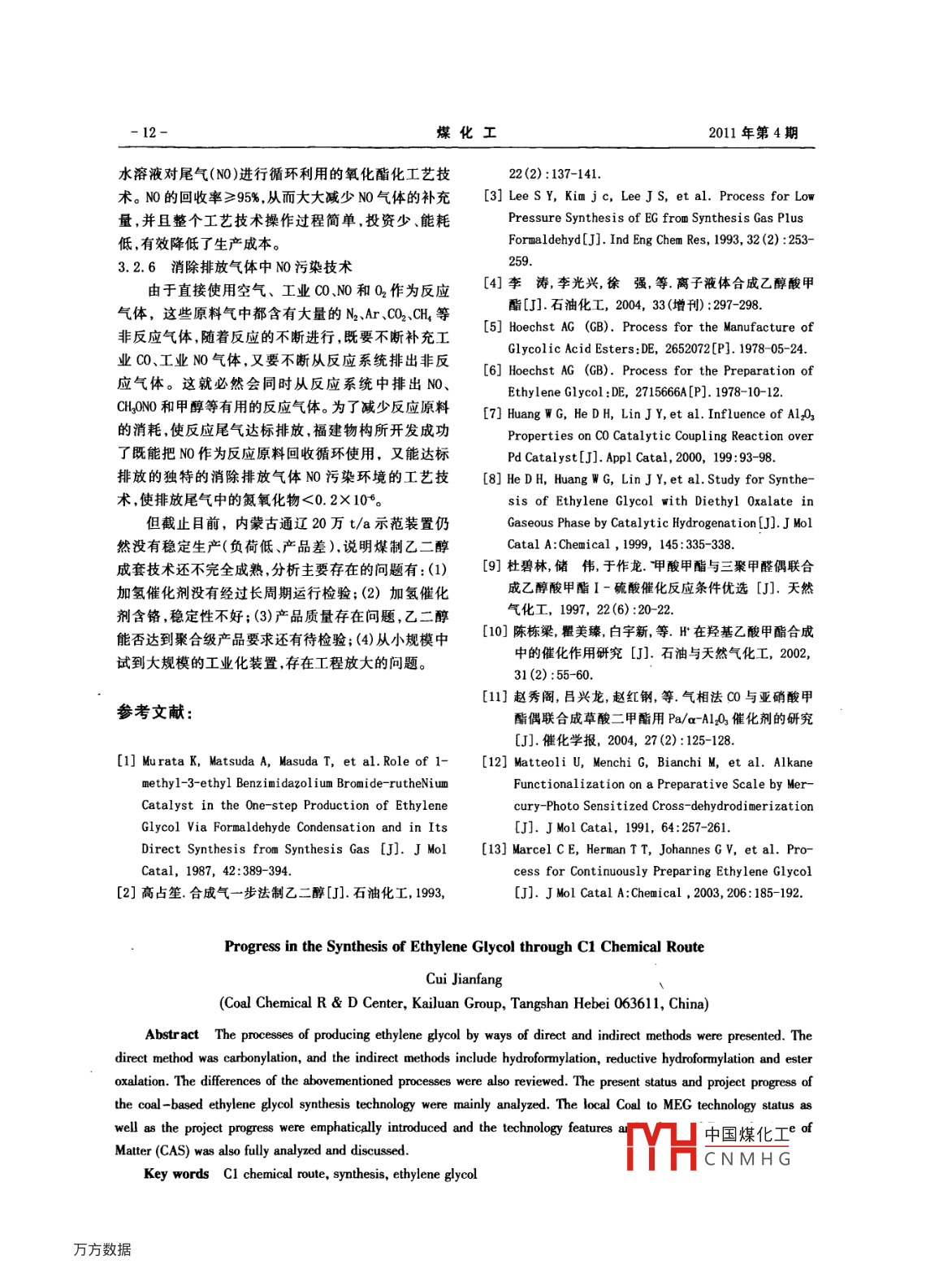 C1化學(xué)路線合成乙二醇技術(shù)進(jìn)展