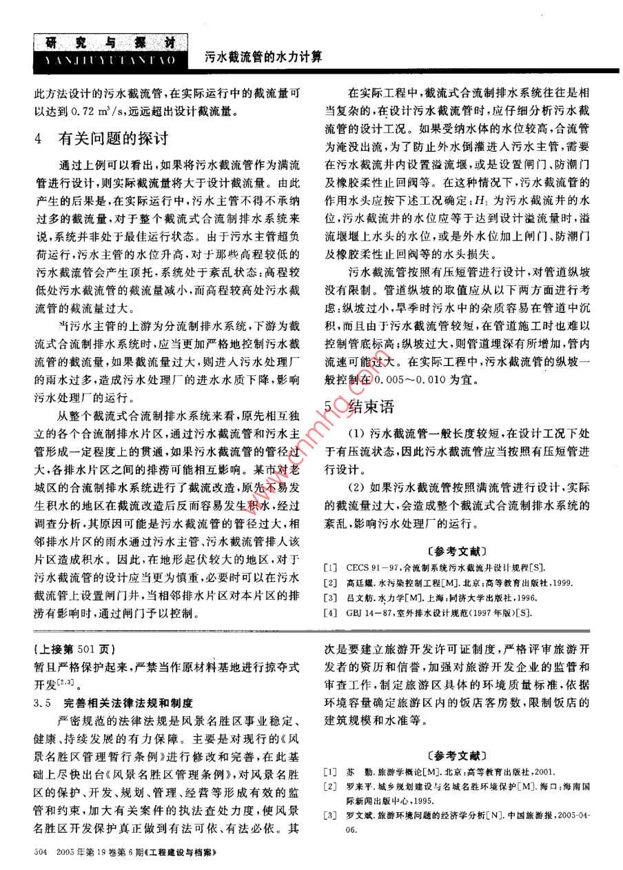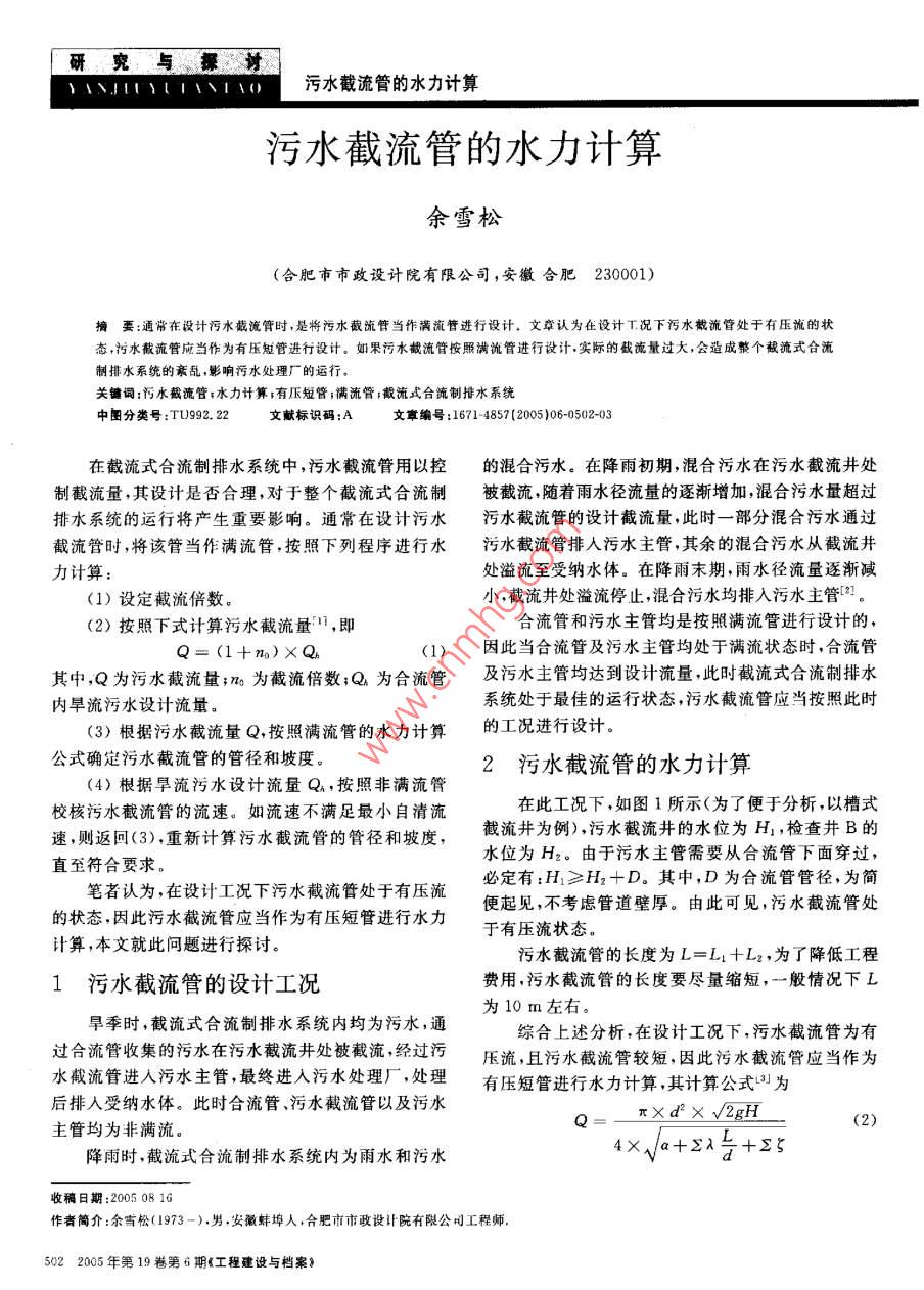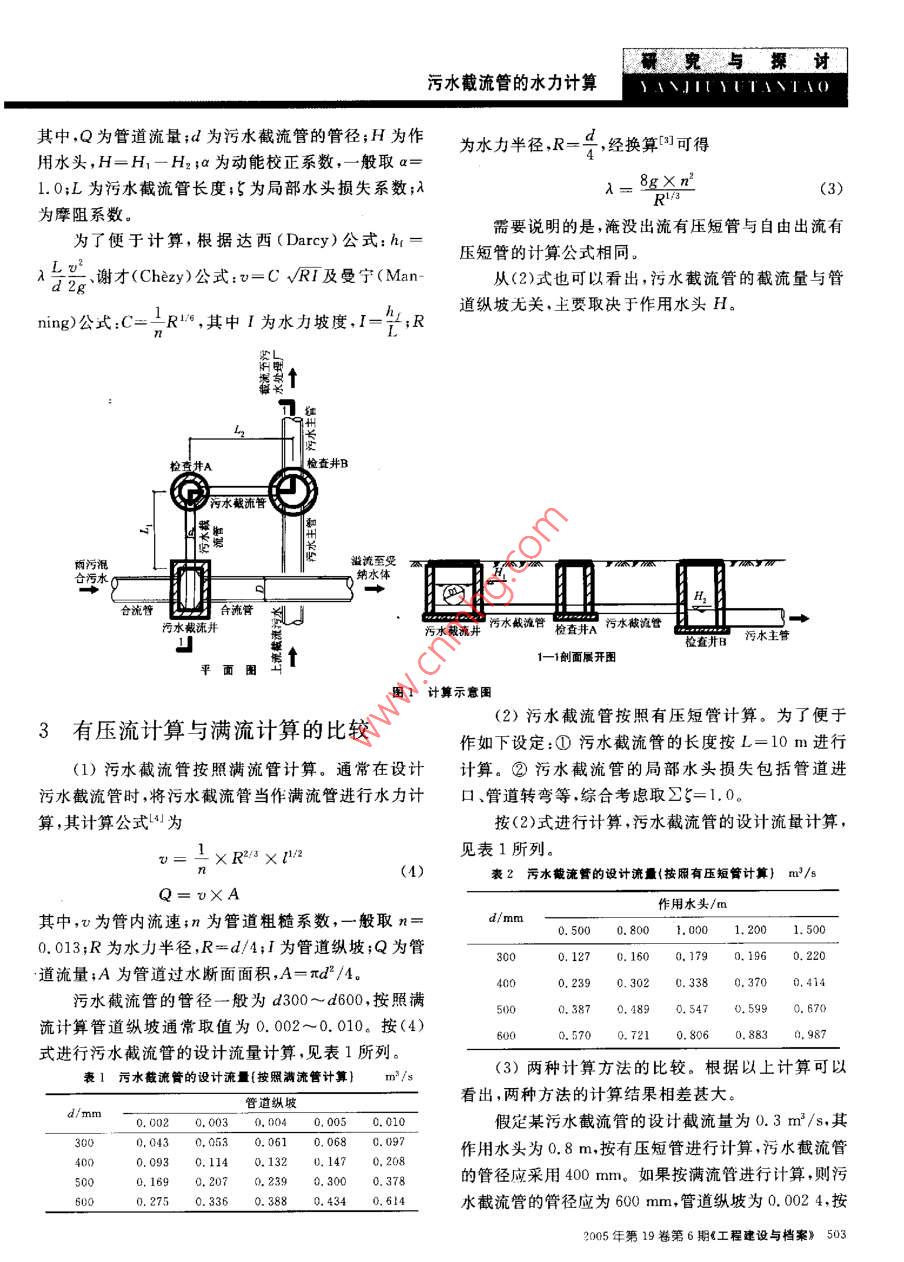污水截流管的水力計算