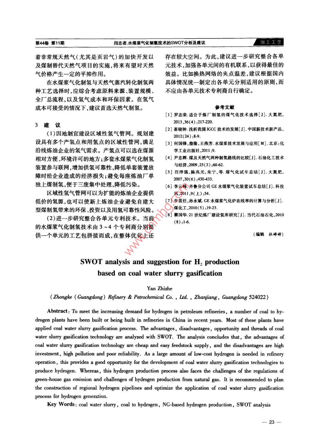 水煤漿氣化制氫技術(shù)的SWOT分析及建議