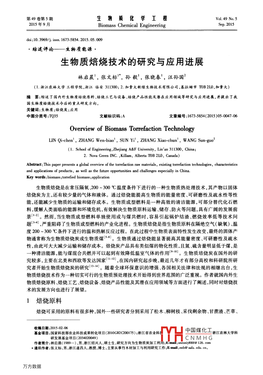 - 期刊名字:生物質(zhì)化學(xué)工程