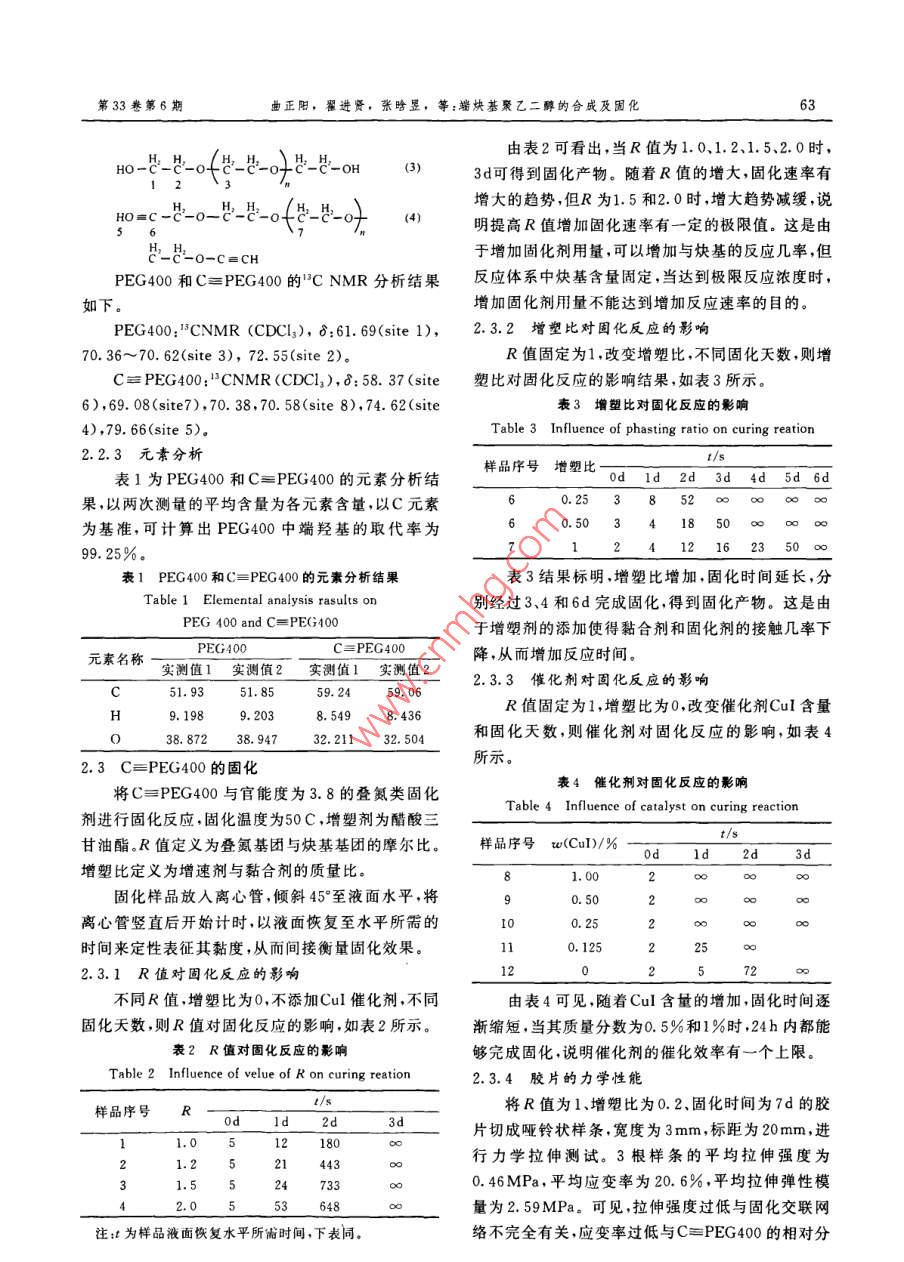 端炔基聚乙二醇的合成及固化