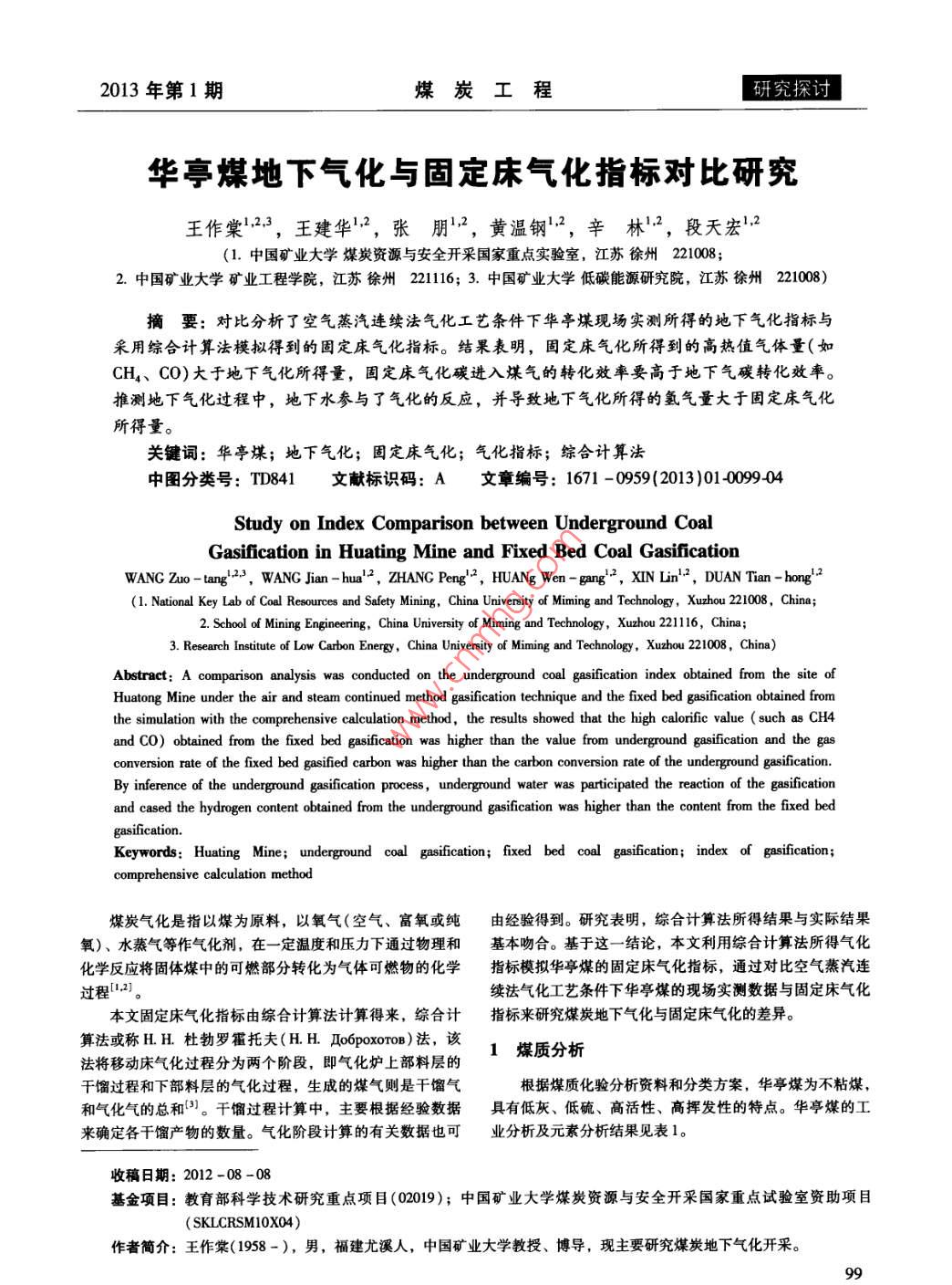 華亭煤地下氣化與固定床氣化指標(biāo)對(duì)比研究
